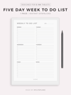 Five Day Week To Do List Template for Remarkable, Supernote, Kindle Scribe, Boox, Kobo