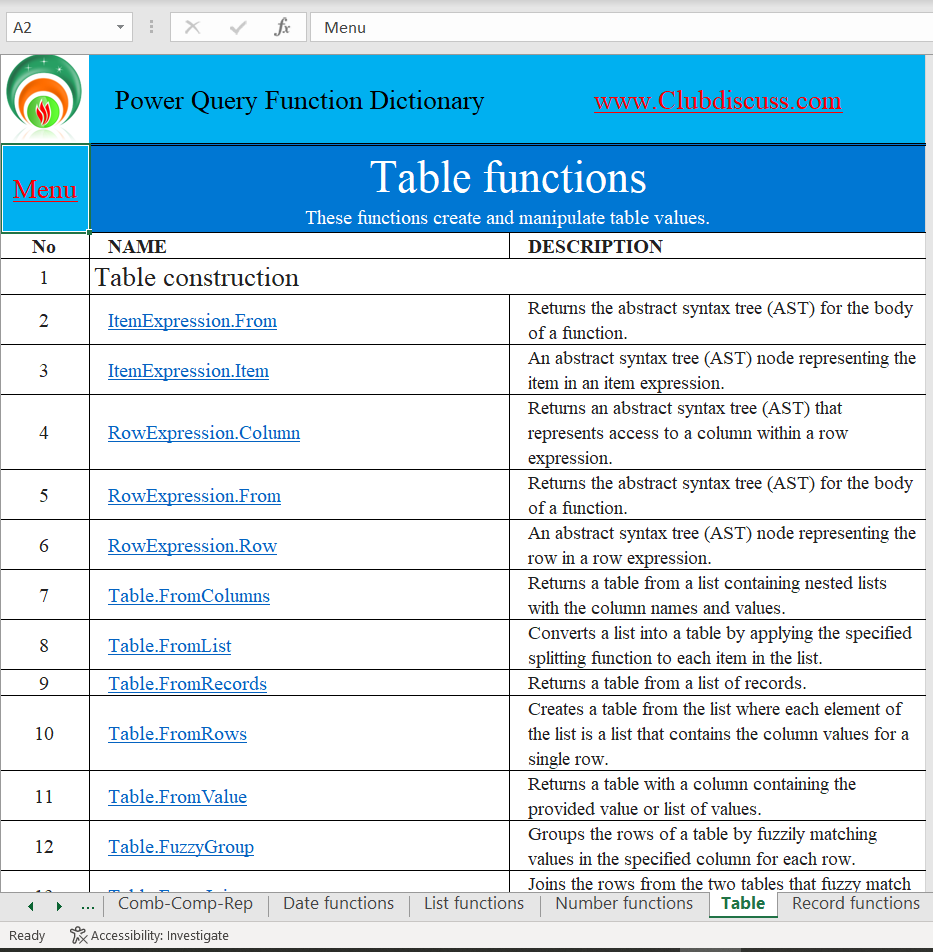 I have created excel files that summarize functions and formulas along with specific examples to make it easier and more convenient for us to use Power Query.