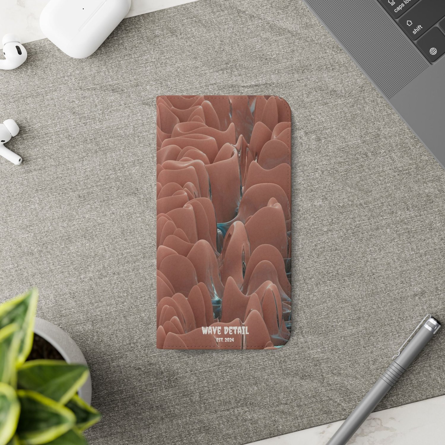 Each case serves as a protective layer and a phone stand. They feature a flat, elastic fastening to keep them closed and stitched inside pockets to store cards and cash storage easily. The polycarbonate inner shell keeps devices secure during regular wear and tear.