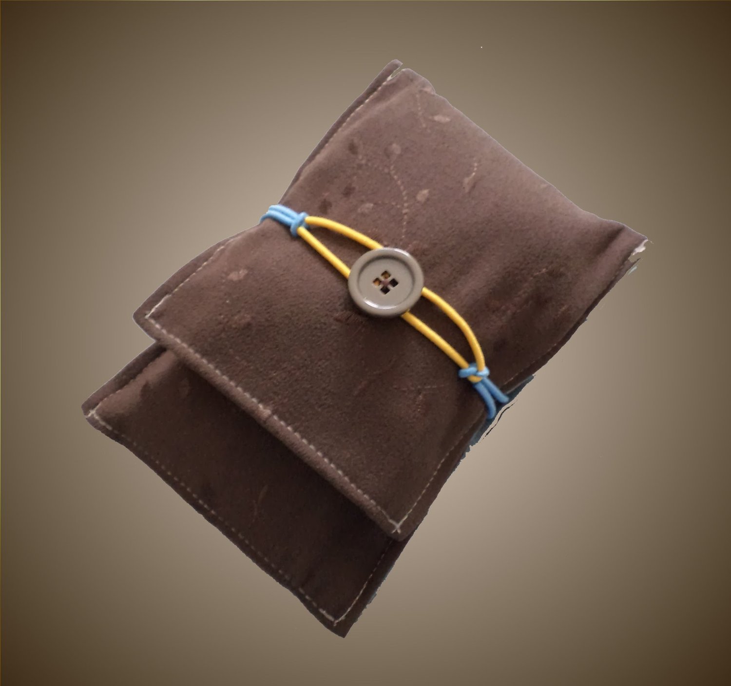 My other half has this set of electronic gadgets that he carries around, to provide music during his workday. It's just a little mp3 player with a requisite charging cord, but since he's not an earphone type of guy, he also has this speaker with its own cord. The speaker originally came with a snug fitting drawstring bag, but it doesn't hold much else. Lately he's been carrying everything in a ziplock, which doesn't provide protection nor is it an elegant solution, all in all. So I told him that I would make him something and kill two birds with one stone: he would end up with a functional carrying case and I would have material for a new tutorial.