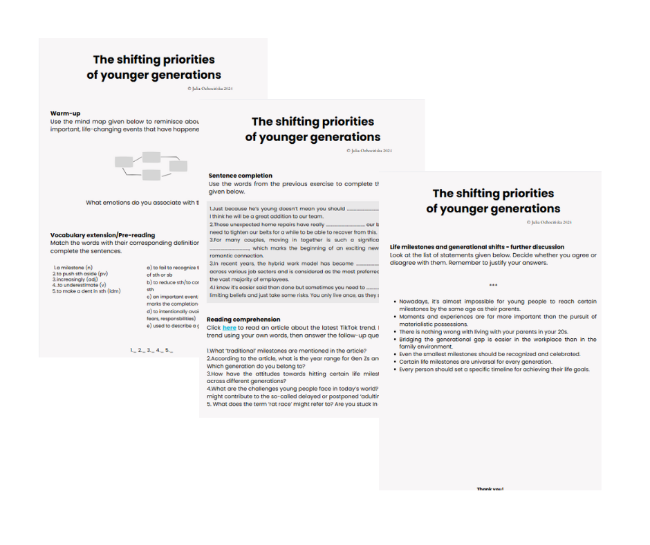A short lesson plan inspired by the latest TikTok trend, aimed to cover a range of topics – from generational differences and traditional life milestones to the concept of delaying adulthood and the challenges faced by young people in the modern world.
