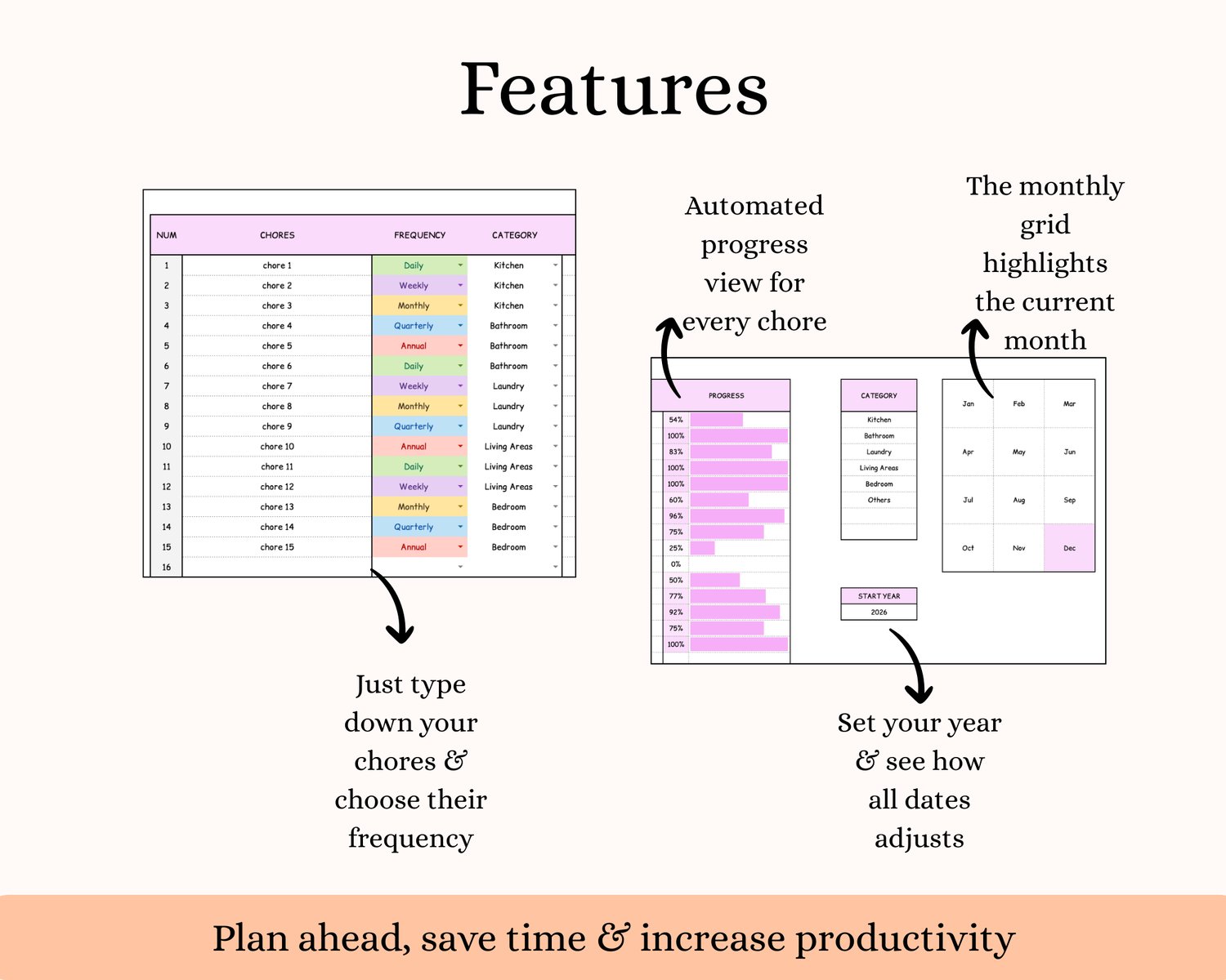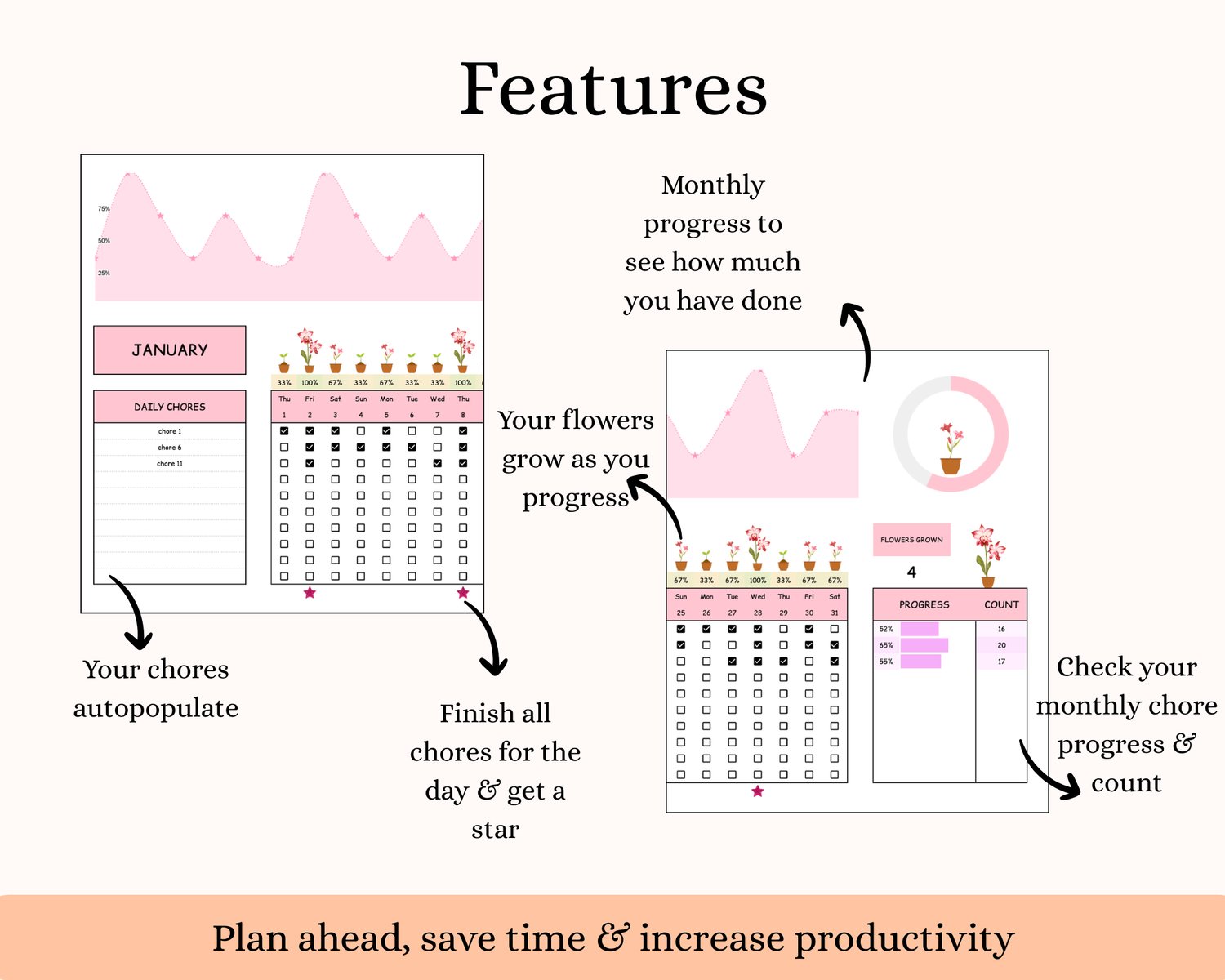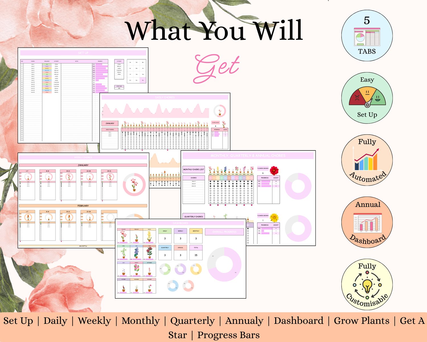 If you love seeing your tasks organized, your progress clearly visible, and your routines finally sticking, this Cleaning & Chore Tracker was made for you.