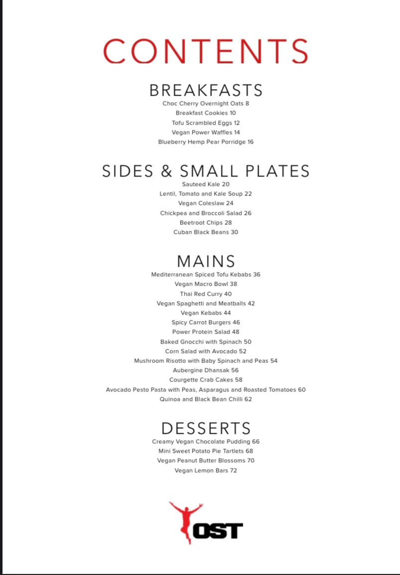 OST Performance Recipe Book 7 is the plant based edition of the OST series. In here you will find 30 tasty recipes all with a barcode compatible for use on My Fitness Pal