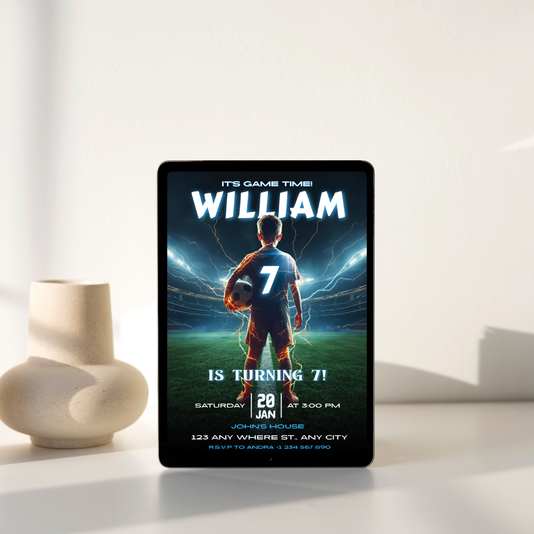 Perfect for coaches, organizers, or anyone hosting a soccer-themed event who wants a clean, eye-catching, and fully customizable design.