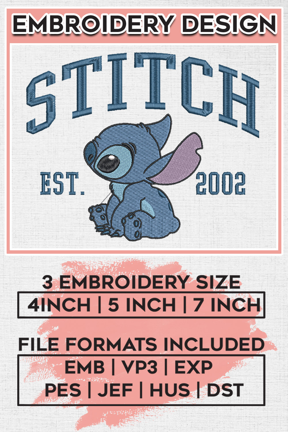 Dis.ney Cute Stitch Est Embroidery Designs, Lilo and Stitch Machine Embroidery Files, Cartoon Character Machine embroidery designs, Disney, 3 sizes, Digital Download