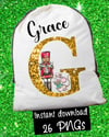 Nutcracker gold glitter alphabet with added sparkle. 26 letters plus mock up. Christmas sublimation design