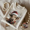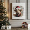 Add cozy holiday charm to your creations with this Highland Cow Christmas design featuring a festive Santa hat and scarf in a soft, painterly style.