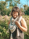 The Calamity Shawl is a simple yet engaging knit, inspired both by the music of the Decemberists and by a love for subtle textures. A triangle shawl knitted from the top down, it consists of stripes of eyelets, mesh and solids that come together to make the perfect addition to any outfit.