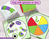 After playing, kids can make their own DIY spinners or dice with the printable templates provided! There are also 3 types of photocopiable activity sheets included: full- page monster bodies for children to complete and colour, fill-in-the-number sheets and the option to include a written description of their monster.