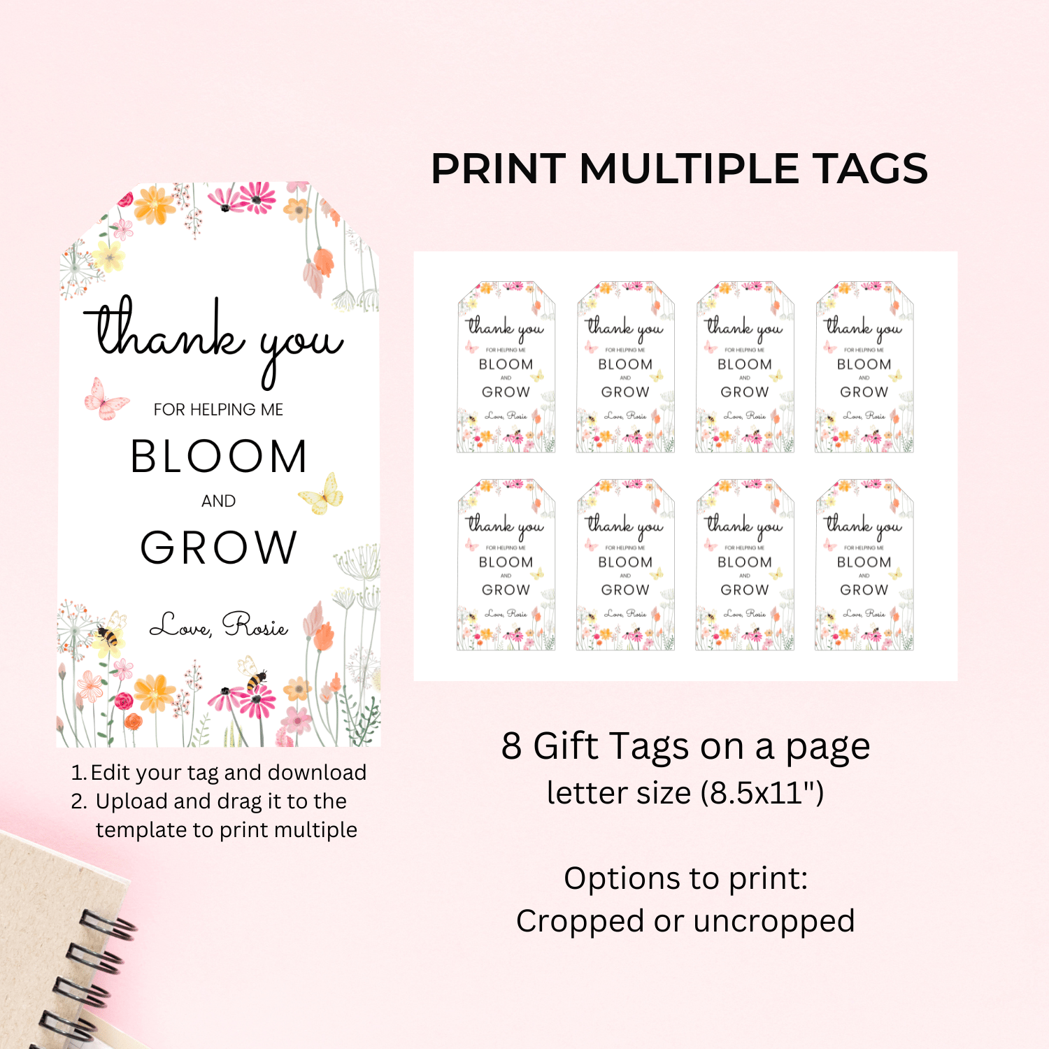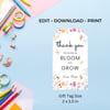 TCHR008 Printable Teacher Appreciation Tags | Thank You for Helping Me Bloom and Grow | Floral Teacher Gift Tag | Canva Editable | Instant Download