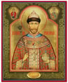 Слева на иконе изображен праведный Иов Многострадальный, в день памяти которого родился Николай II, справа - небесный покровитель Государя святитель Николай Чудотворец. А внизу надпись: «Сия святая икона написана к прославлению Царя-мученика в России». А было это за несколько лет до канонизации Царственных Мучеников.