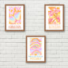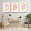 A set of three motivational wall art prints to give some color to your office or home. These designs are styled in a boho fashion and consist primarily of orange, pink, and yellow with a touch of blue.