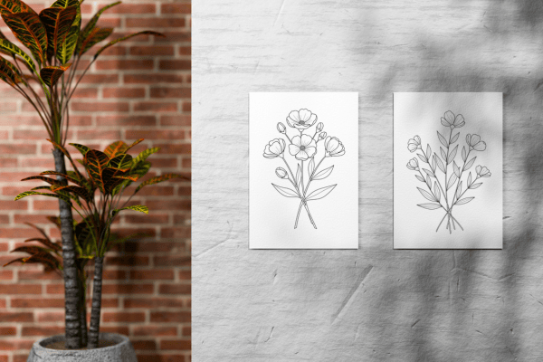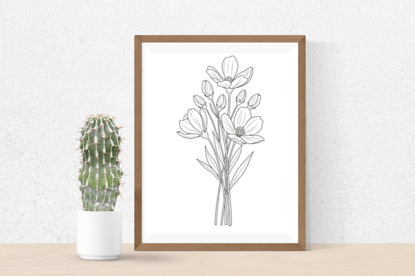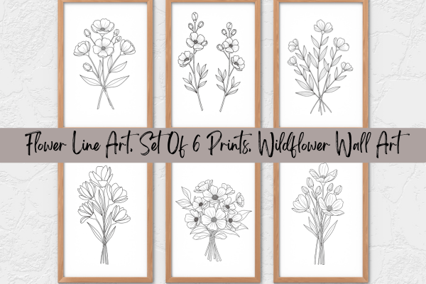 Flower Line Art Wall Art | Black and White Botanical Flower Art | Set of 6 Prints