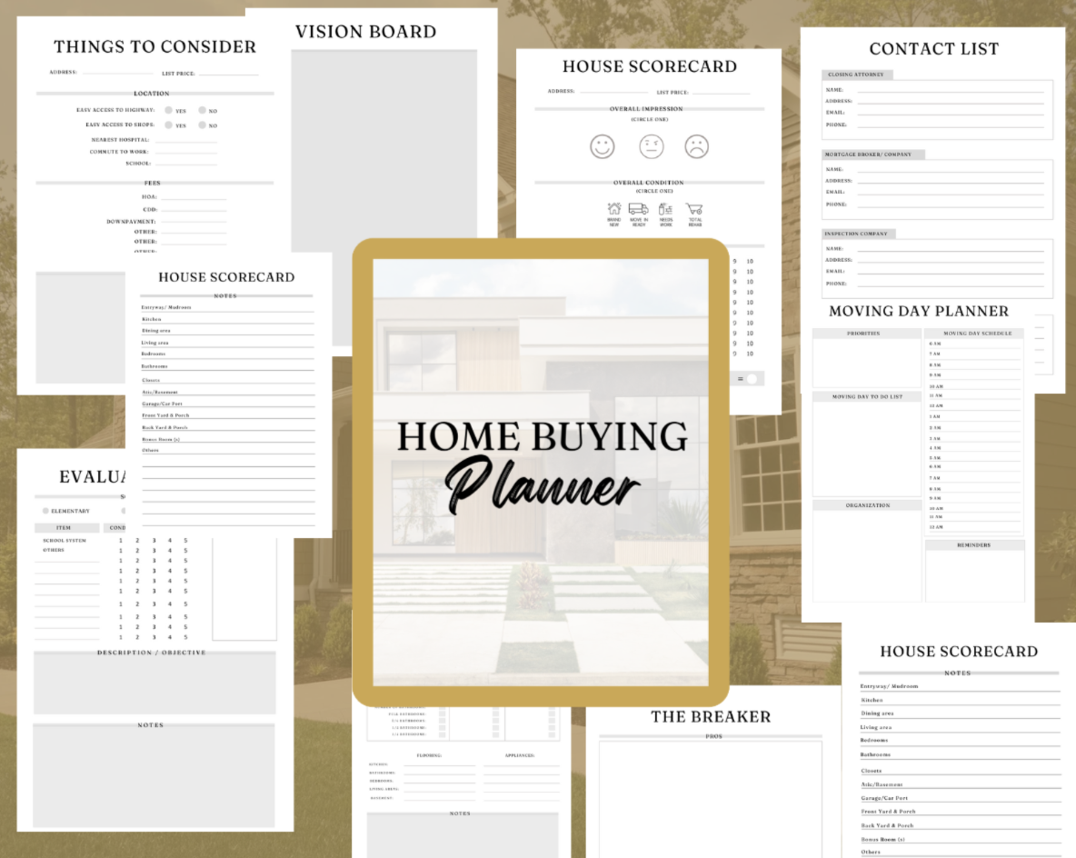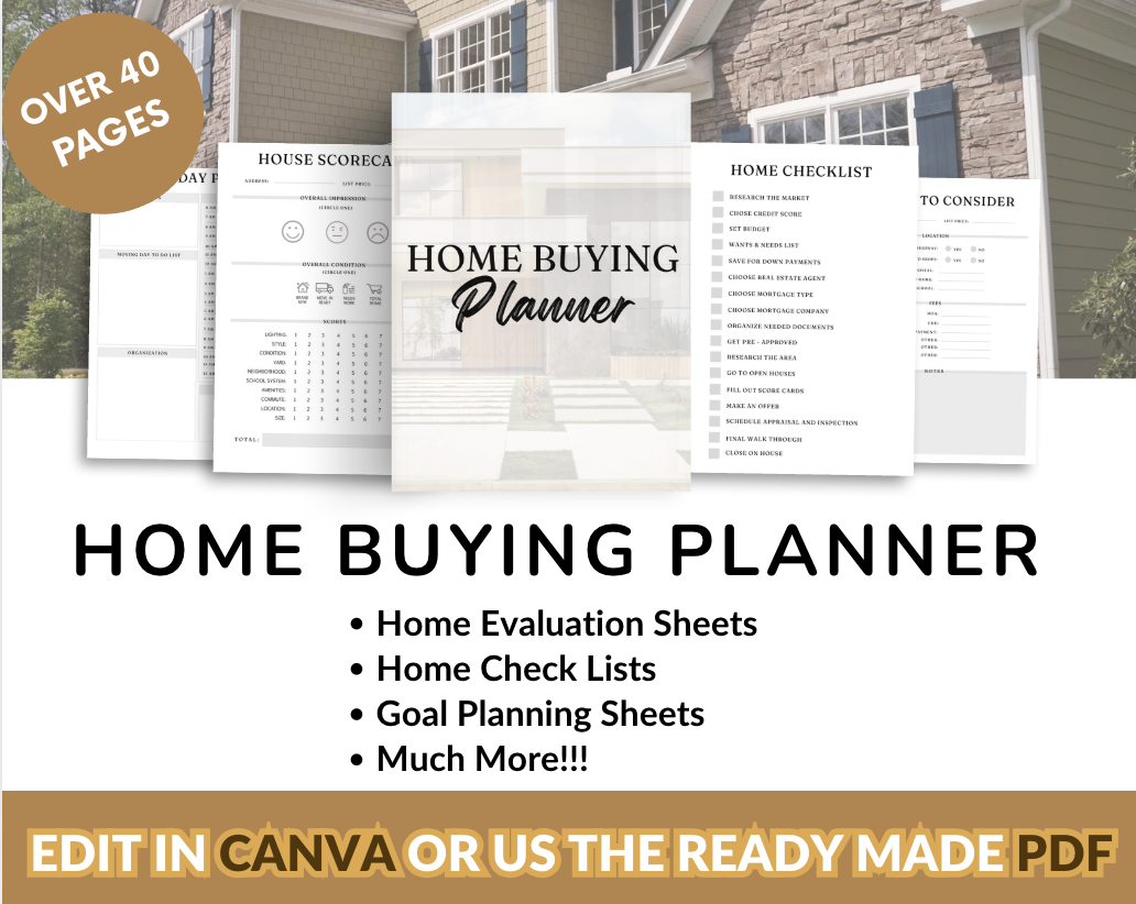 House Hunting Planner Printable PDF | Editable Canva Templates for Home Evaluation, Checklists, Goal Planning Sheets, Over 40 Pages