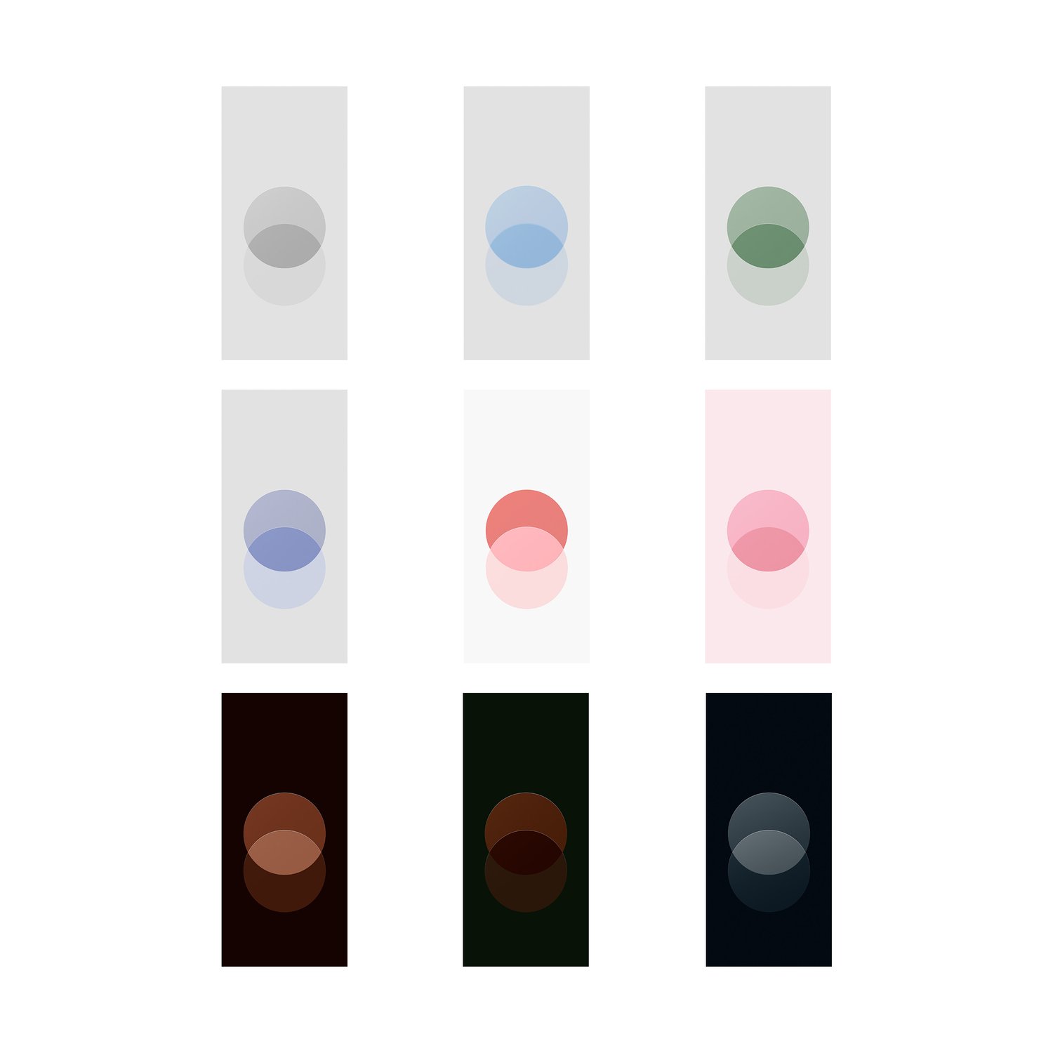 A collection of colorful minimalist wallpapers — 9 for desktop, 9 for mobile.