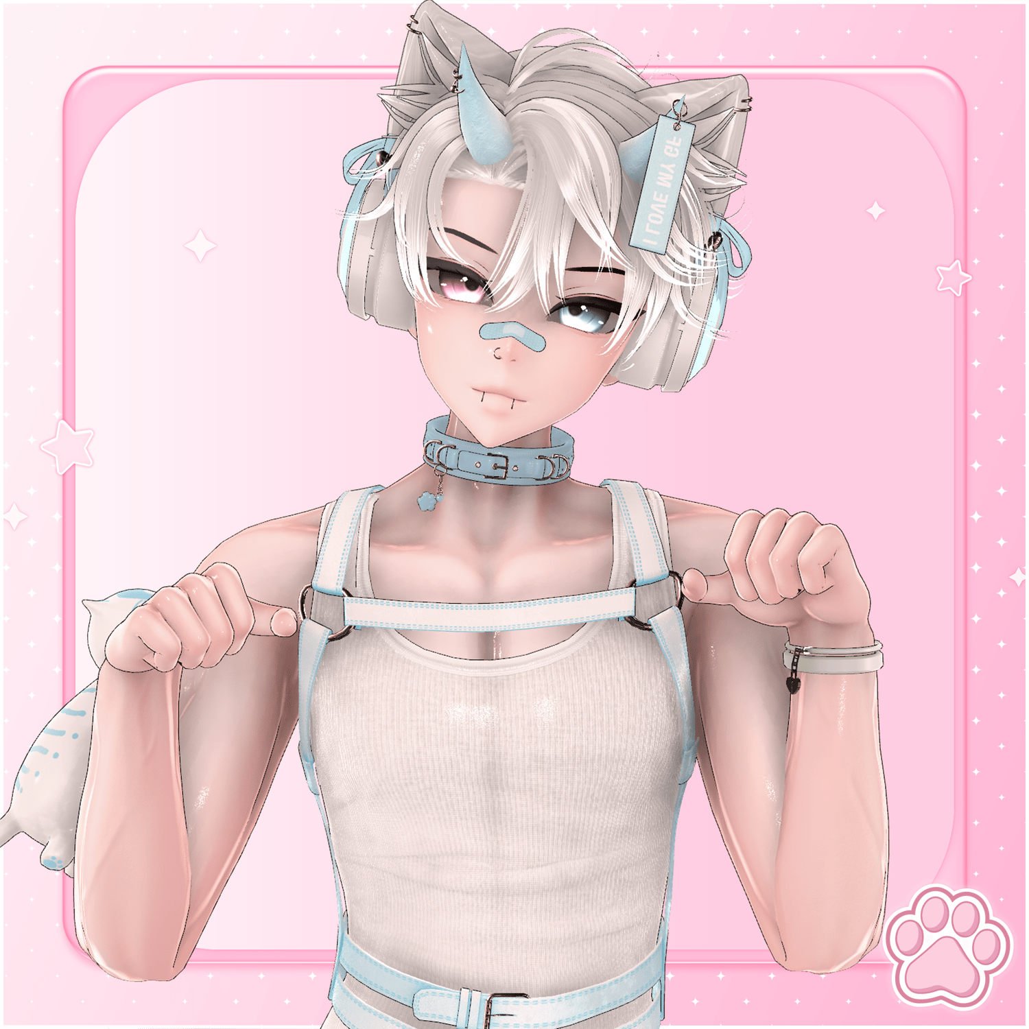 - 17 OUTFIT TOGGLES ( TANKTOP / HARNESS / HOODIE / COLLAR / GLOVES / BOXERSHORTS / PANTS / SOCKS / SHOES / BANDAID / BRACELET / HEADSET / HORNS / CAT ARM / CAT LEG / CAT TAIL / PHONE )