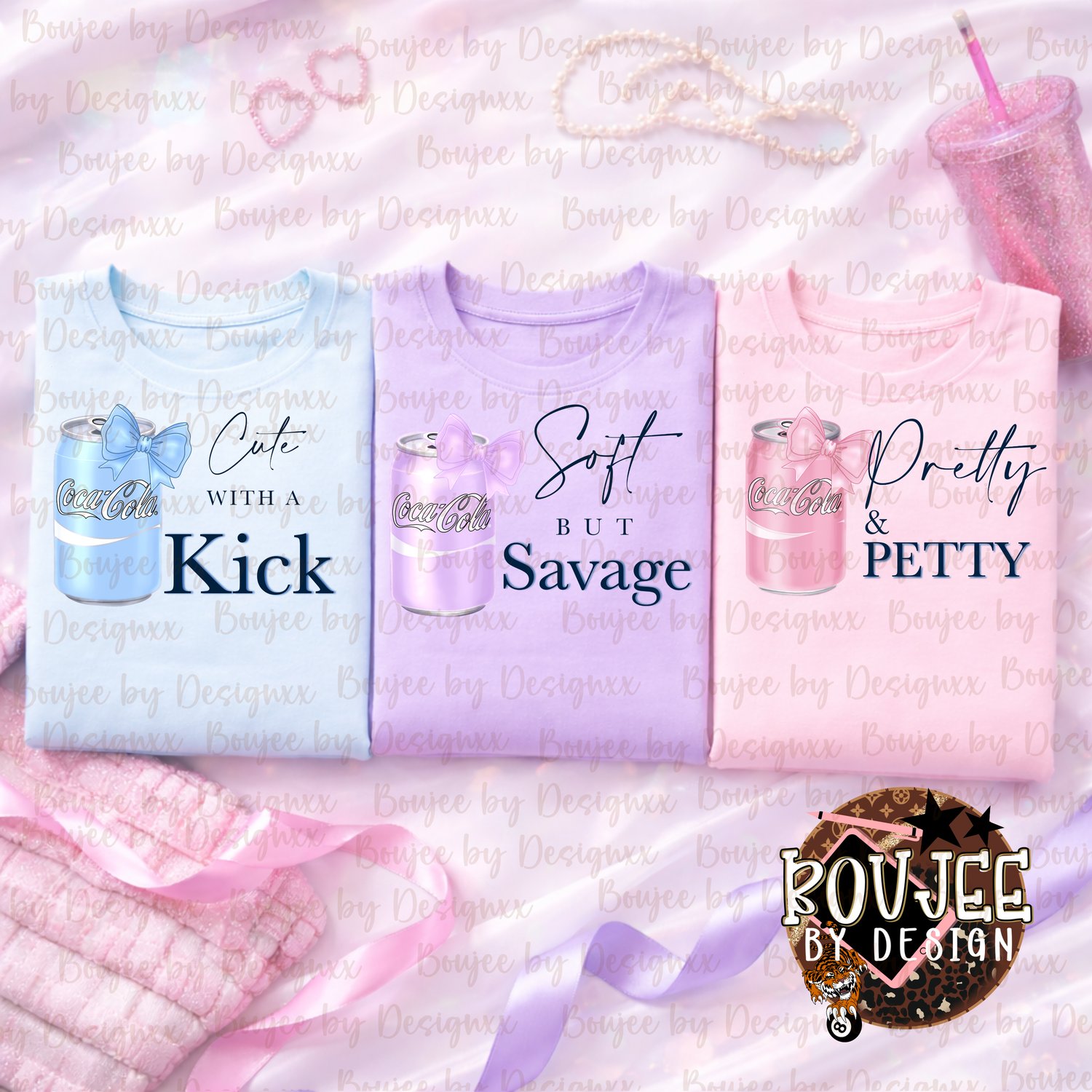 Pastel Bow Soda Collection PNG Bundle – Cute With a Kick, Soft But Savage, Pretty & Petty – DTF & Sublimation Design