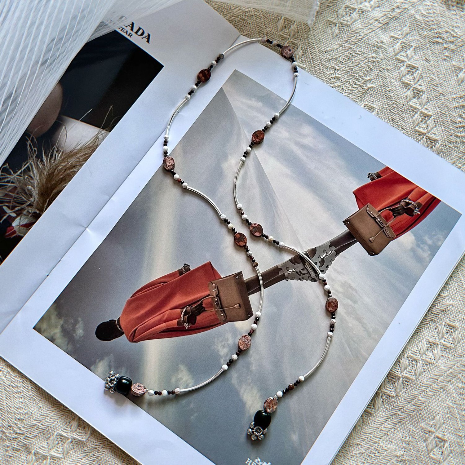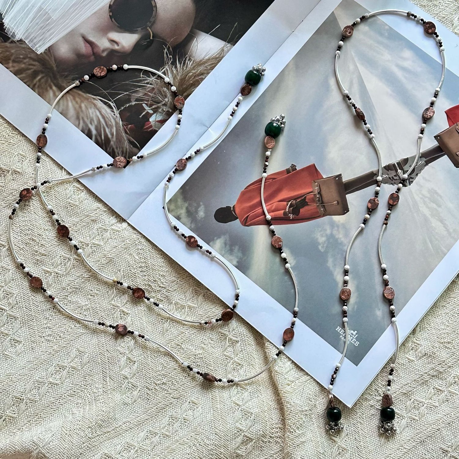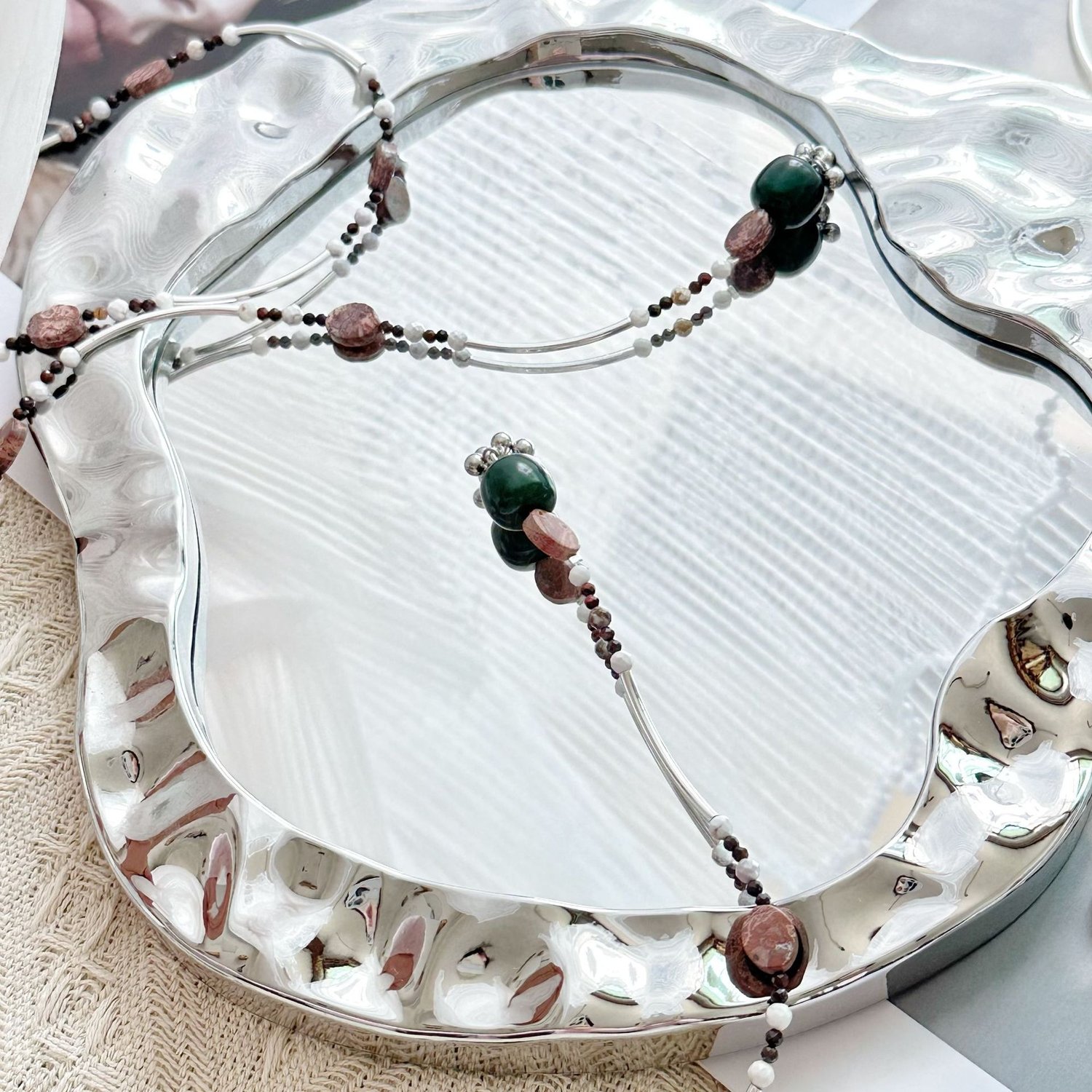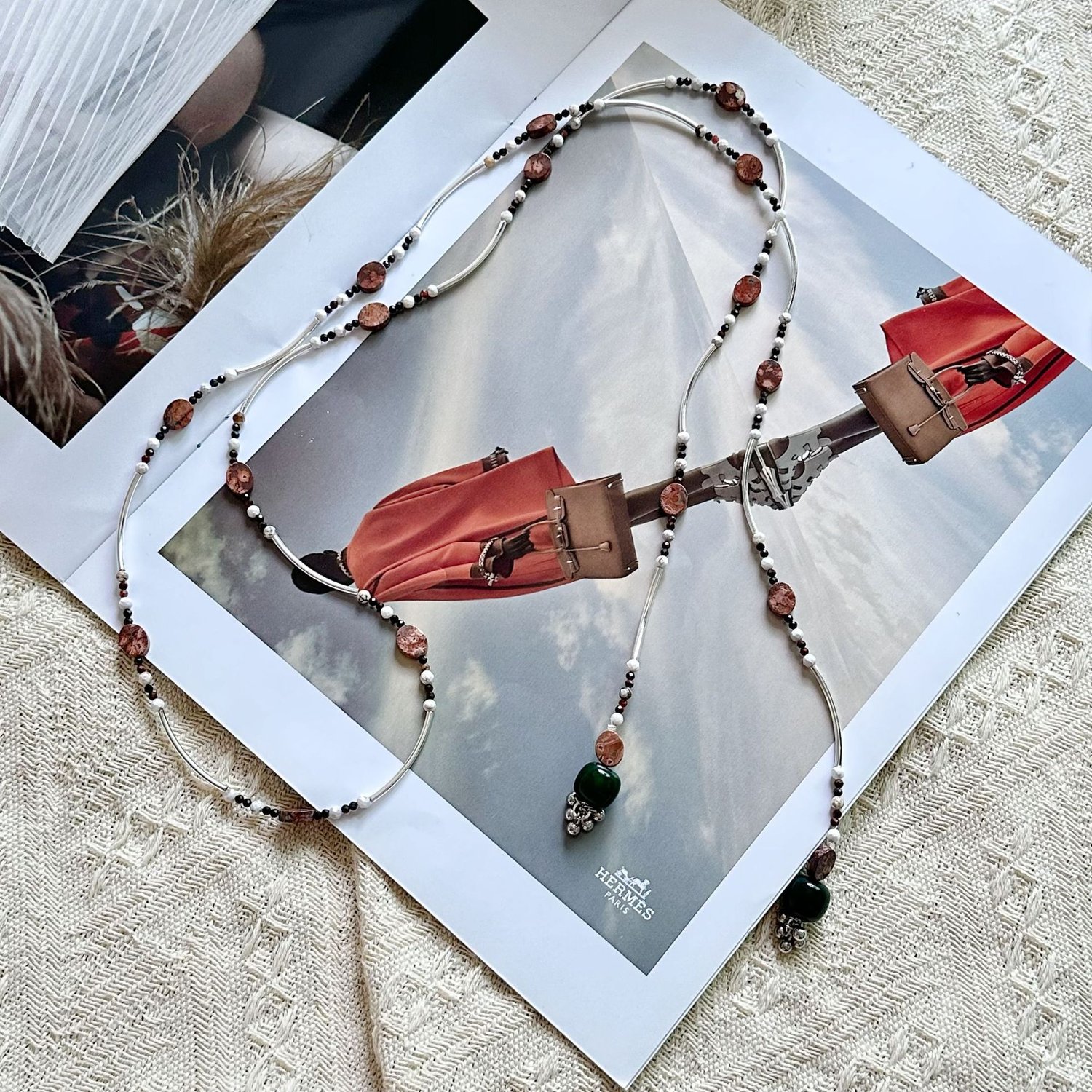 Ethnic boho vintage style handmade natural stone beaded long layered necklace