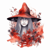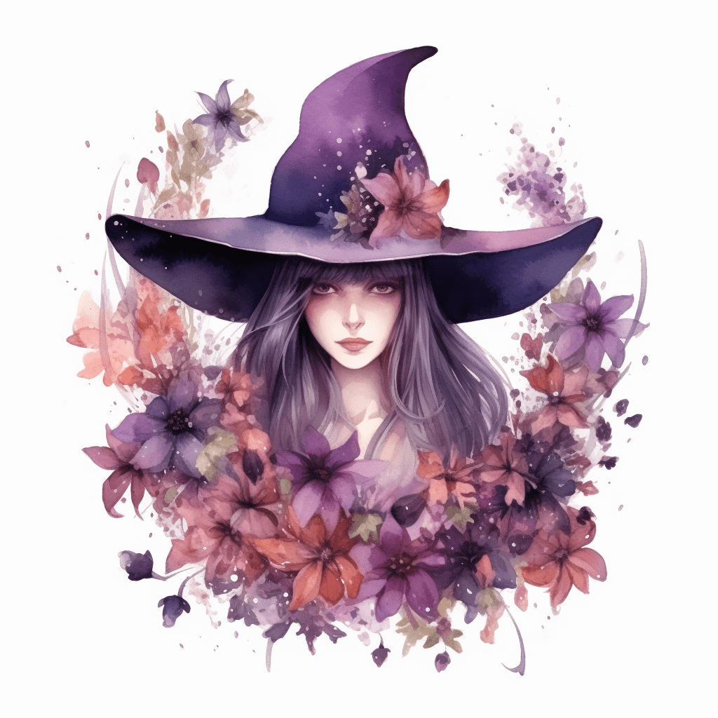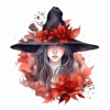 Context: witch, hat, flowers, gothic, fantasy, watercolor