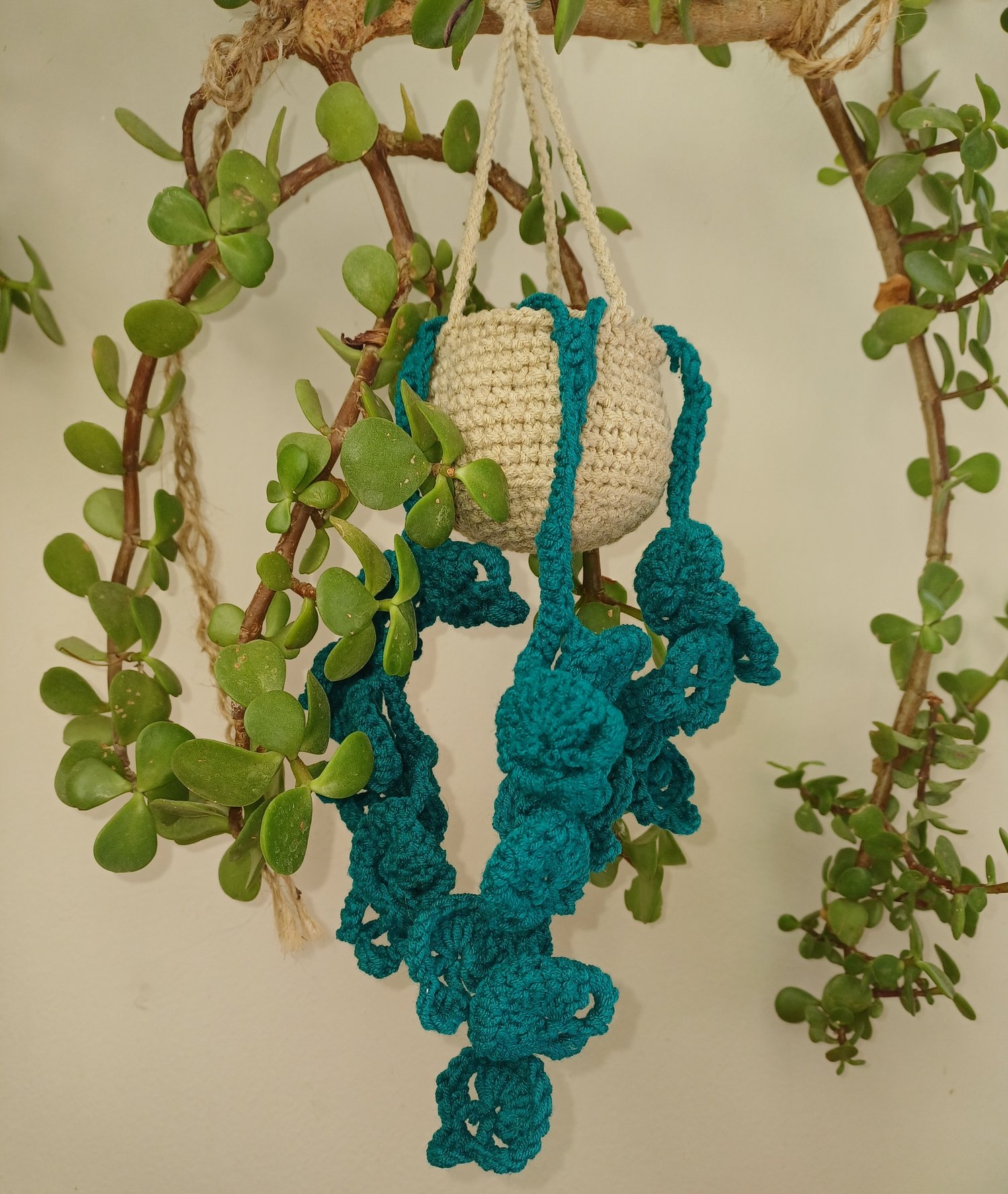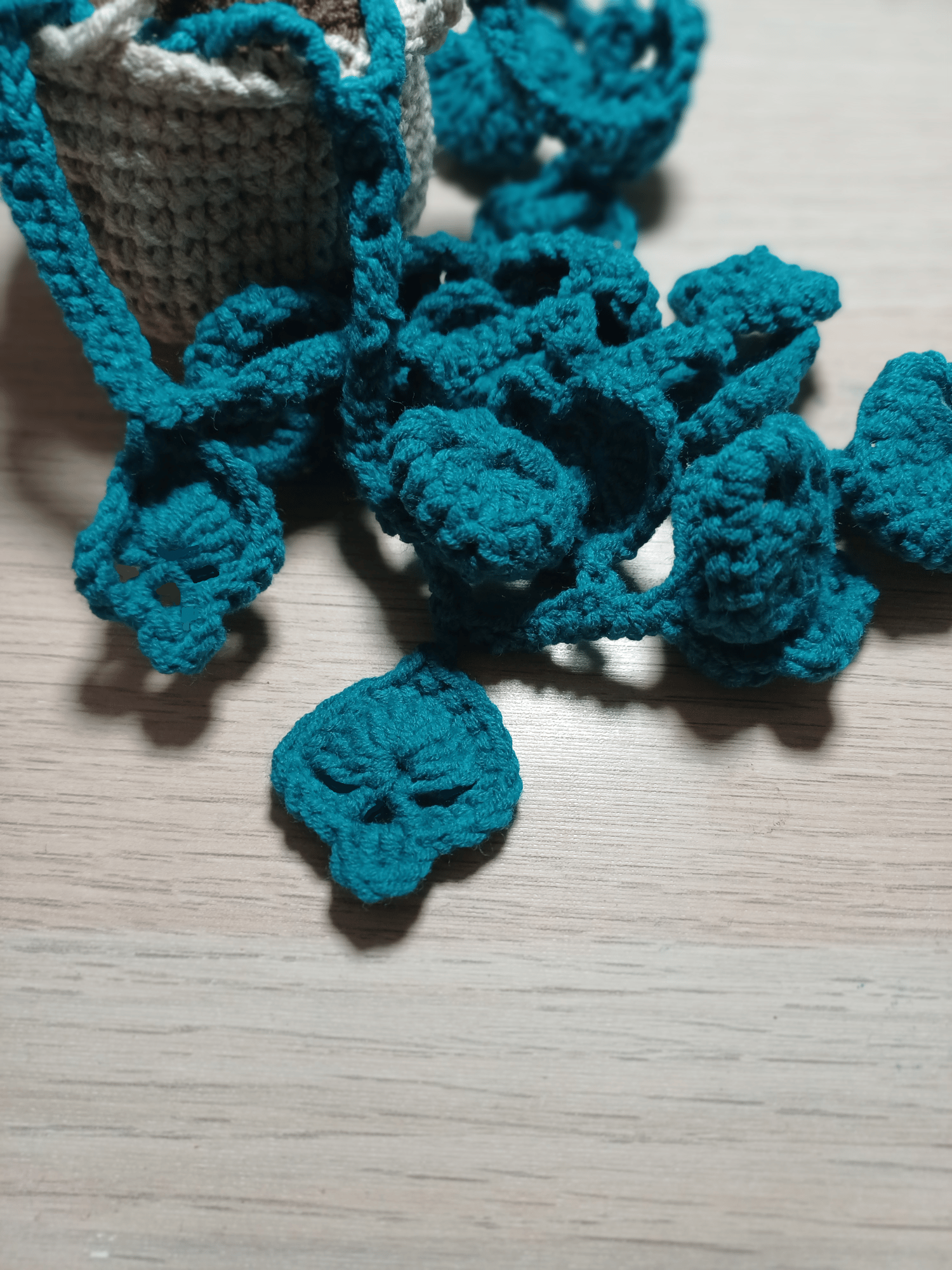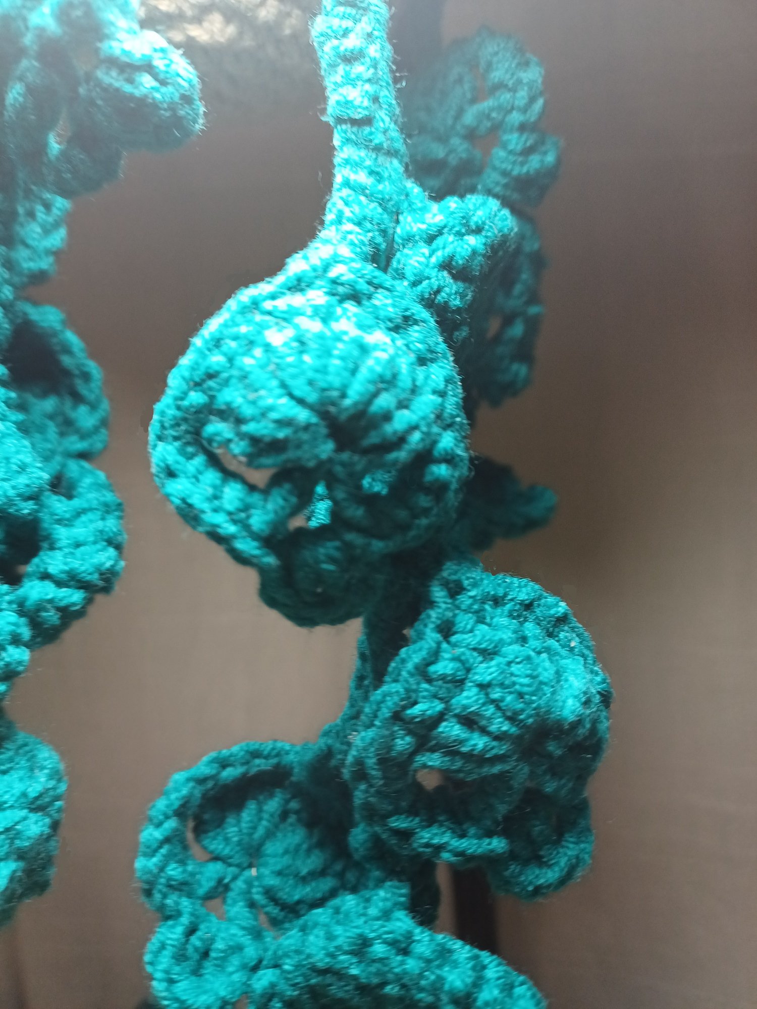 Twisted, haunting, and beautifully macabre. Skull Ivy weaves dark green vines with eerie skull-shaped leaves. Perfect for adding a touch of gothic mystery to your crochet garden or for those who love to blend fantasy with handmade artistry.