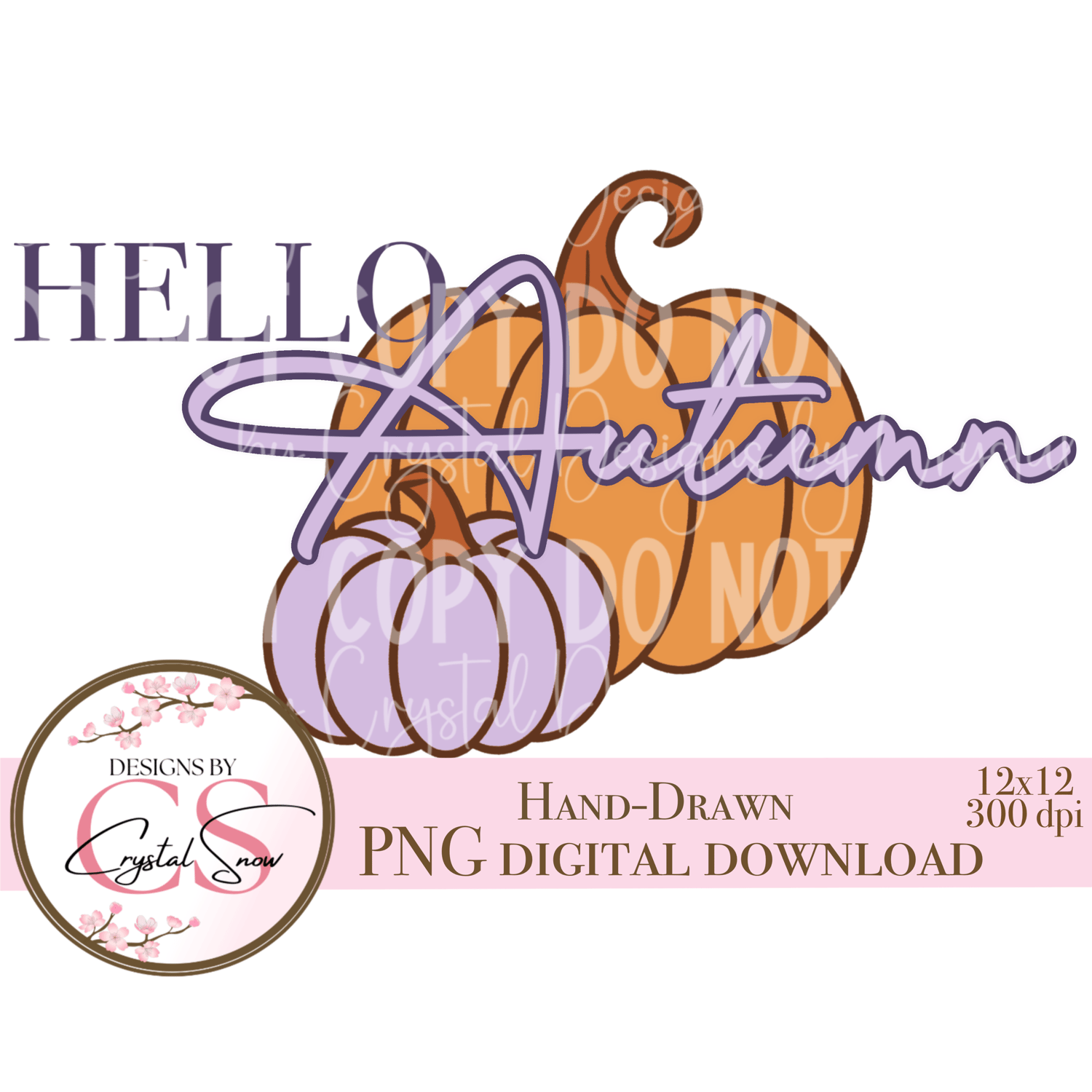 Hello Autumn PNG | Fall Pumpkin Clipart for Sublimation, Stickers, Shirts, Mugs & DIY Crafts | Hand-Drawn Digital Download