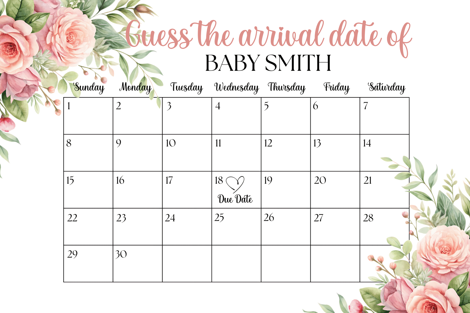 - Purpose:Â Guests write their name on the date they think the baby will arrive.