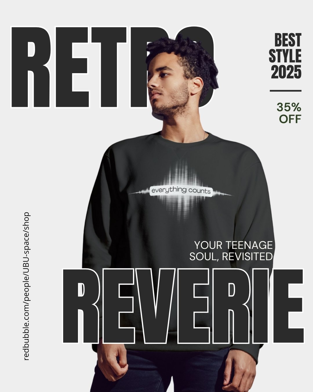 Everything Counts is a text-only nod to that sharp-edged Depeche Mode track that made corporate critique sound danceable. This clean design wears like a mantra, and works like a quiet protest.