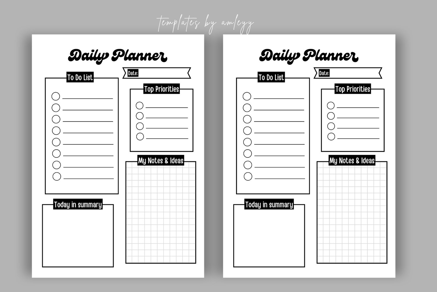 Free Monochrome Daily Planner Printable