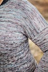 This sweater starts at the hem and is worked bottom up, you begin with the ribbing and then move into the first stitch pattern which is worked for about 50-75% of the length of the body before switching to the next stitch pattern for the remaining length of the body to the underarm separation. Once the work has been separated for the front and back, the remainder of the sweater is knit in stockinette and the neckline and shoulders are shaped separately before the front and back shoulders are seamed together. Next the neckband is picked up and a small amount of ribbing is worked before binding off. Finally, stitches are picked up around the armhole and the drop shoulder sleeves are worked from the shoulder down to the wrists.