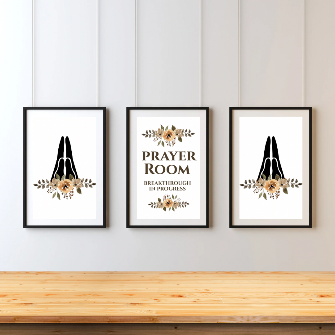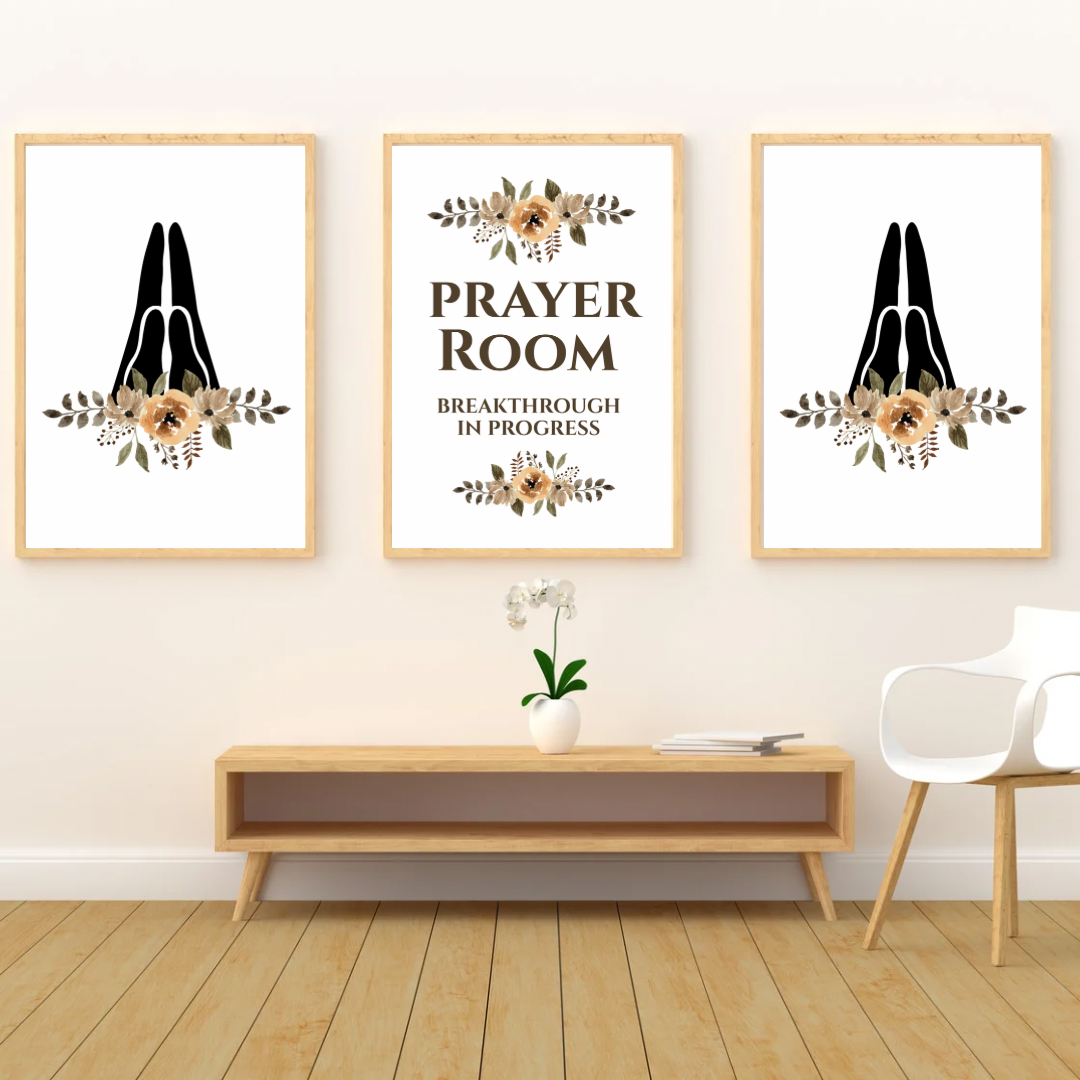 Prayer Room 3-Piece Wall Art Set — “Breakthrough in Progress” + Praying Hands | Christian Printable Decor | Instant Download