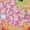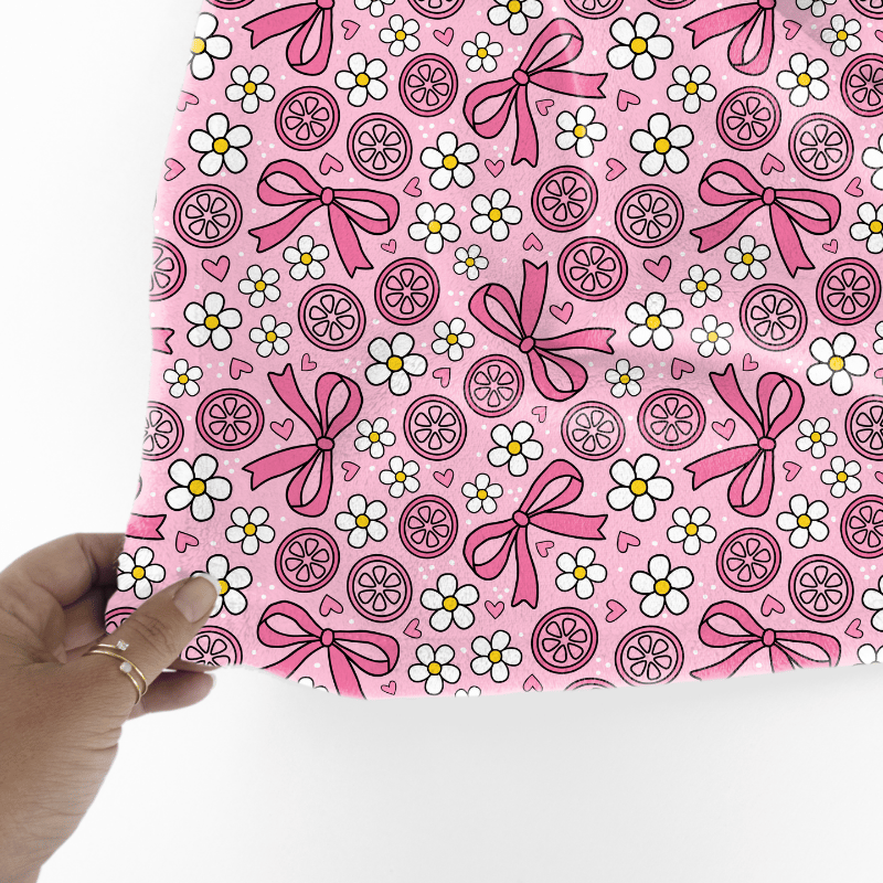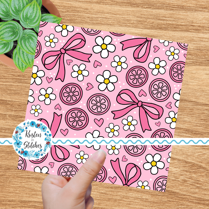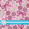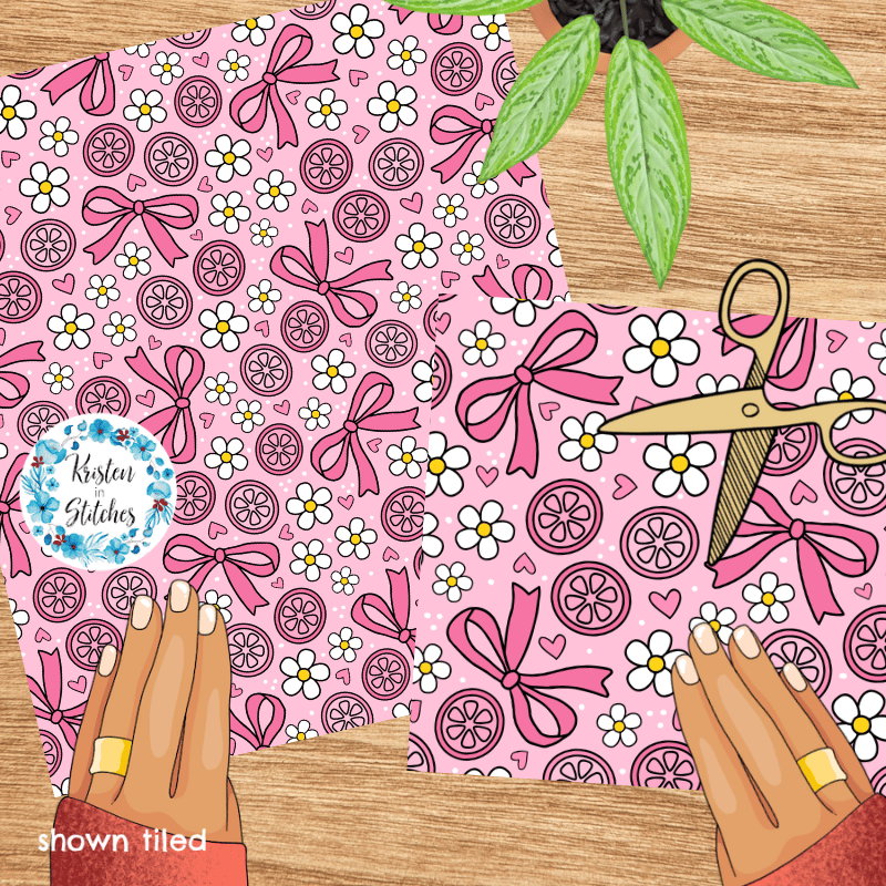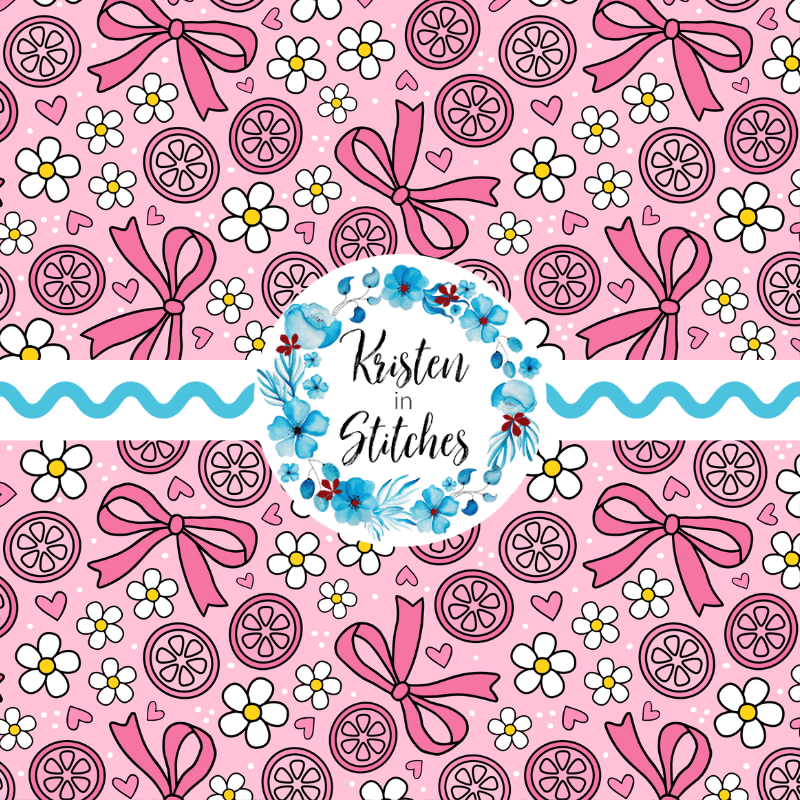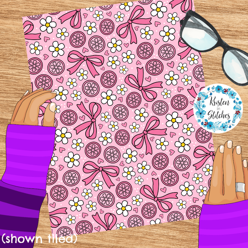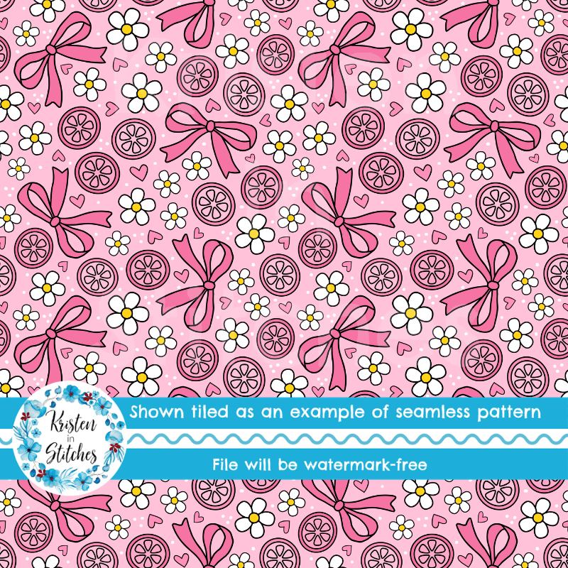 Coquette Fruit and Bows Floral Seamless Pattern, Daisy Flowers, Pink Citrus