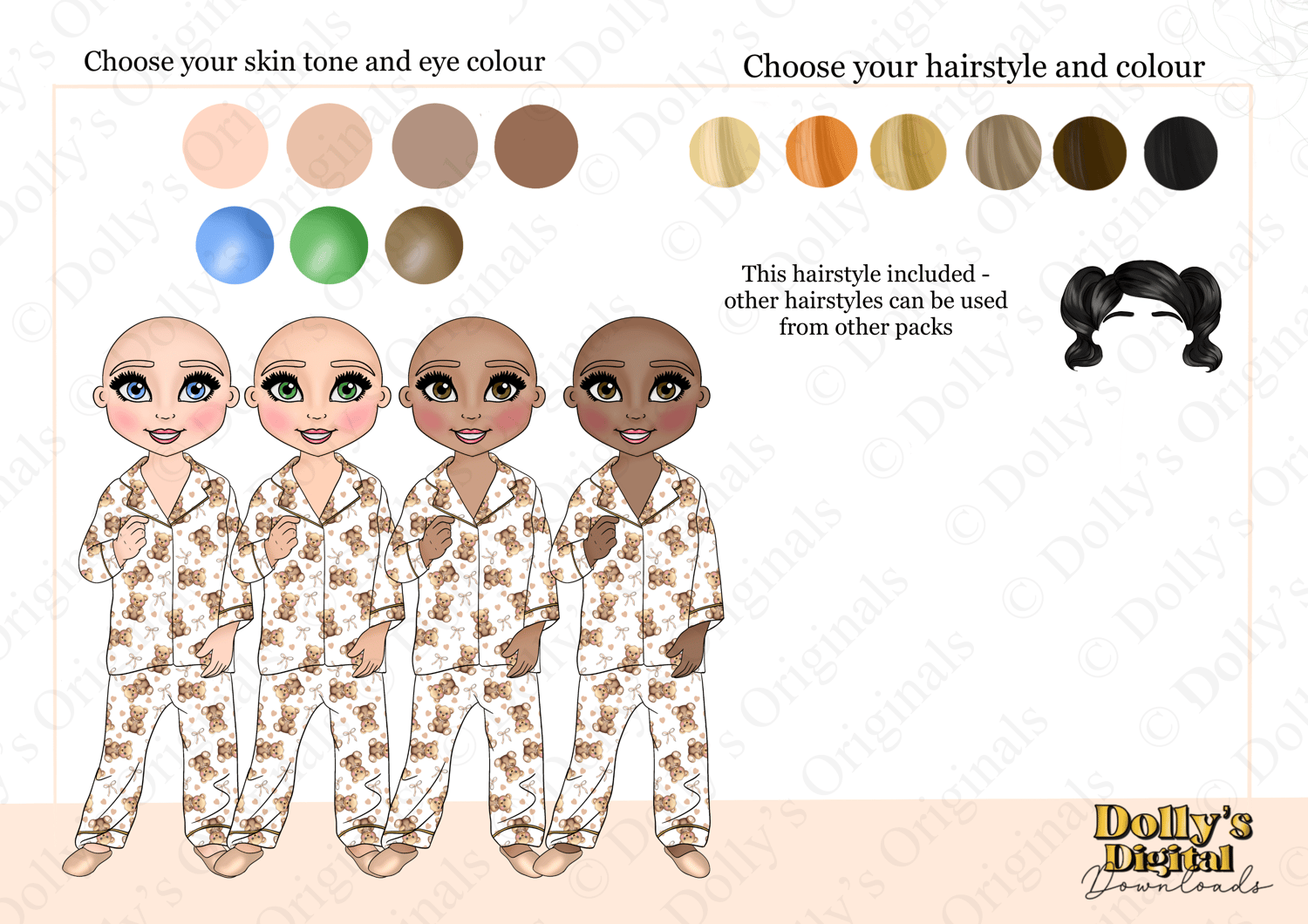 Instant digital download of our Beige Bear Pyjamas Toddler Girl Bundle PNG (19 PNG’s)