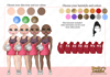 four different skin tones, three eye colours and 12 hair colours in one hairstyle)