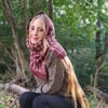 This snood is worked seamlessly from the top down, starting from the circumference around the head down to the shoulders, working in the round. When the right length is reached, the work is divided in two parts, a Front and a Back, which are then worked flat and separately. This creates a split that makes the snood more comfortable to wear.