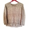 Knitting starts with the saddles. The back, front and sleeves are picked up in turn from the saddles and knit downwards. Finally, sides and sleeves are seamed.