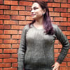A fine gauge sweater takes some time to knit, but rewards you with such a flattering drape! Turn on your favourite audio book while knitting the back; the front gets a little spicier with neck, cable and side shaping!