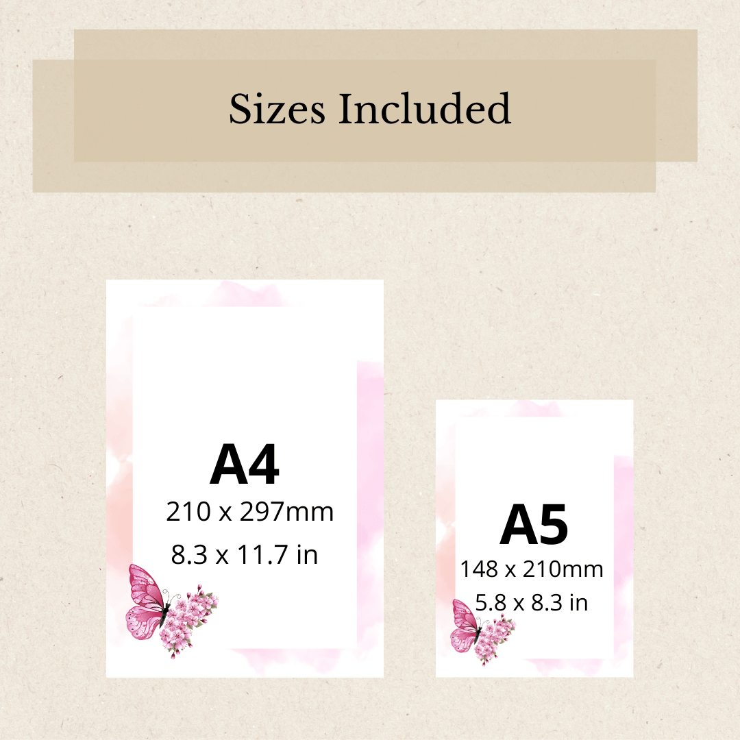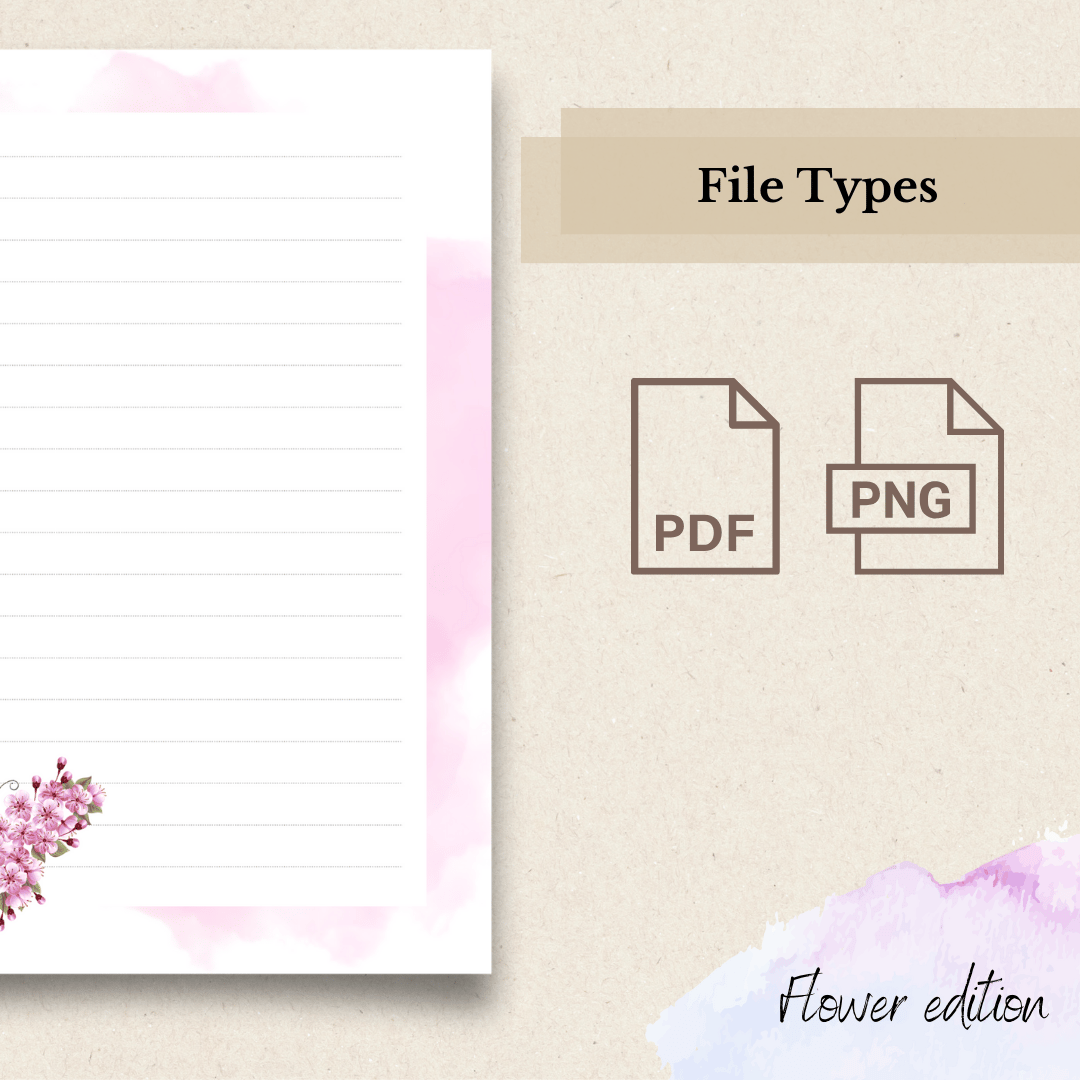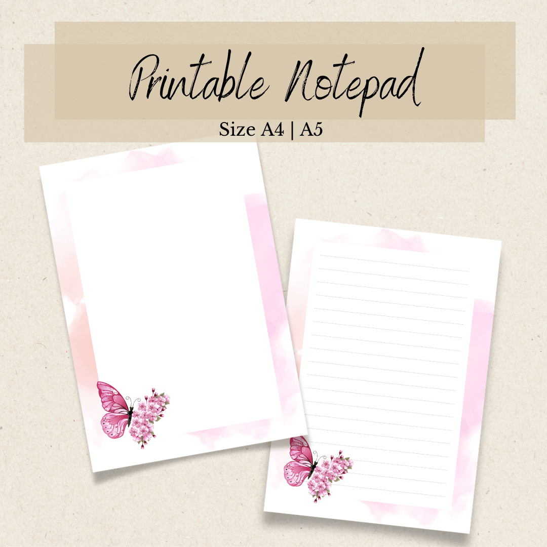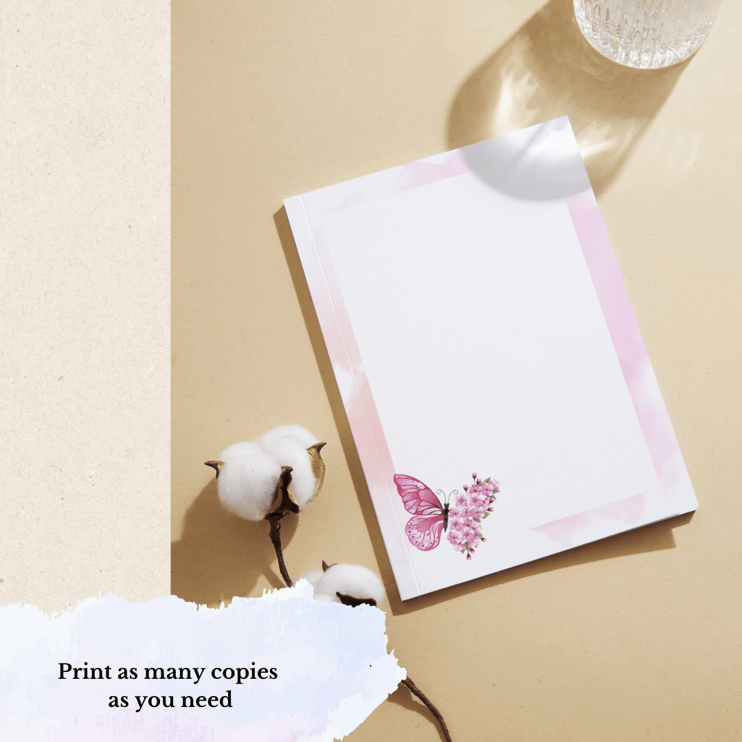 Designed Writing Paper, Printable Letter Writing Paper, Custom Notepad with Flowers, Pink Edition, Floral Personalized Notepad, Printable Stationery, Notes Pages, A4 | A5