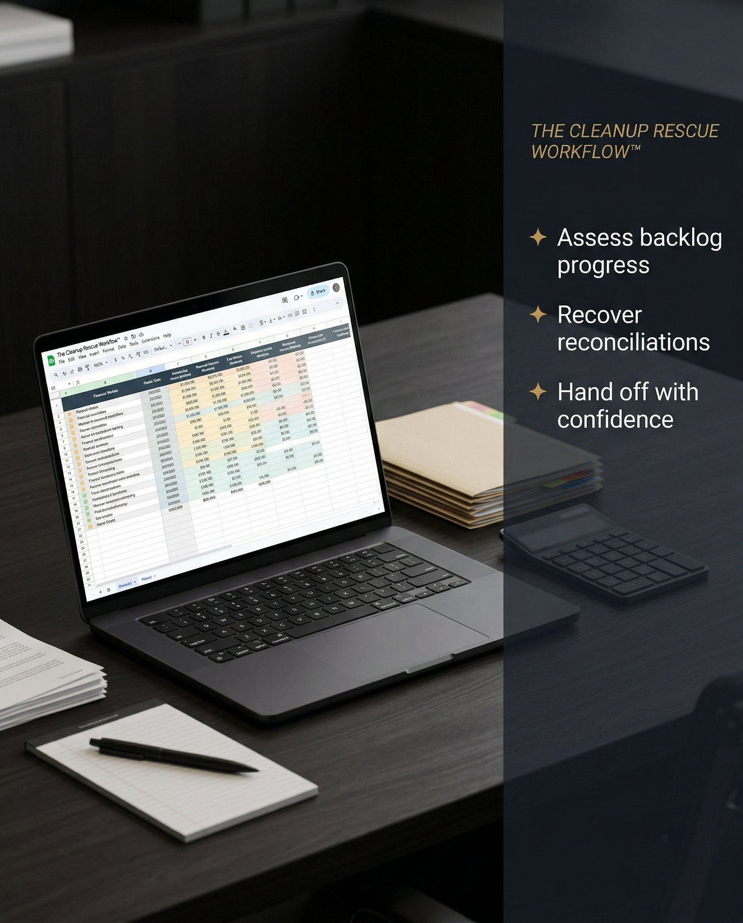 This premium operational system was built for bookkeepers, accountants, tax preparers, and cleanup specialists who need a structured way to assess backlog work, track cleanup progress, manage reconciliations, follow up on missing records, and move clients toward clean recurring service without relying on scattered notes or manual guesswork.
