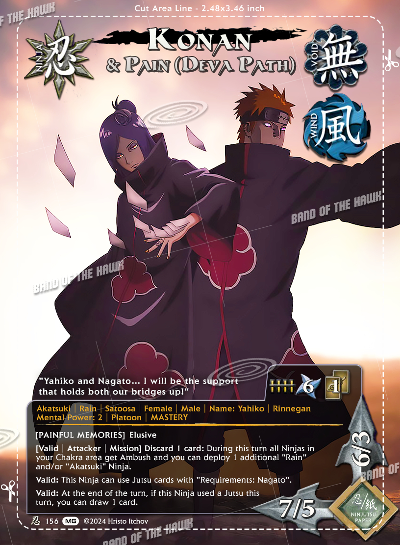 n156 - Pain (Deva Path) and Konan - Promo Ninja card from our Might Guy card set for Naruto CCG.