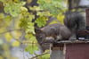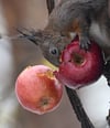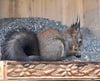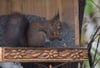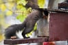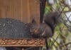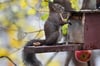 Eurasian Red Squirrel Eating Seeds in a Feeder