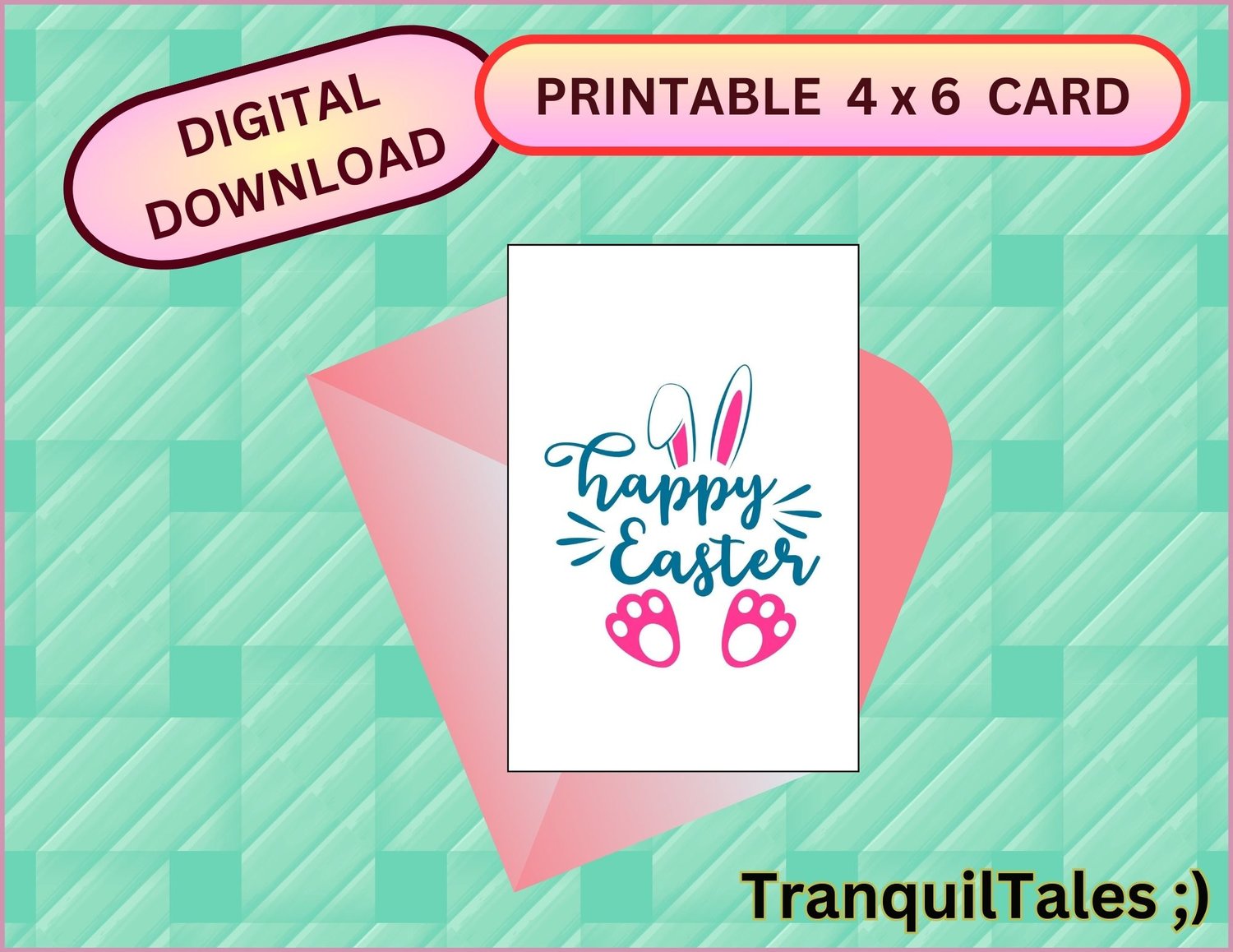 Cute Bunny Happy Easter - Card - 4" x 6" inches - Easter card - PDF File