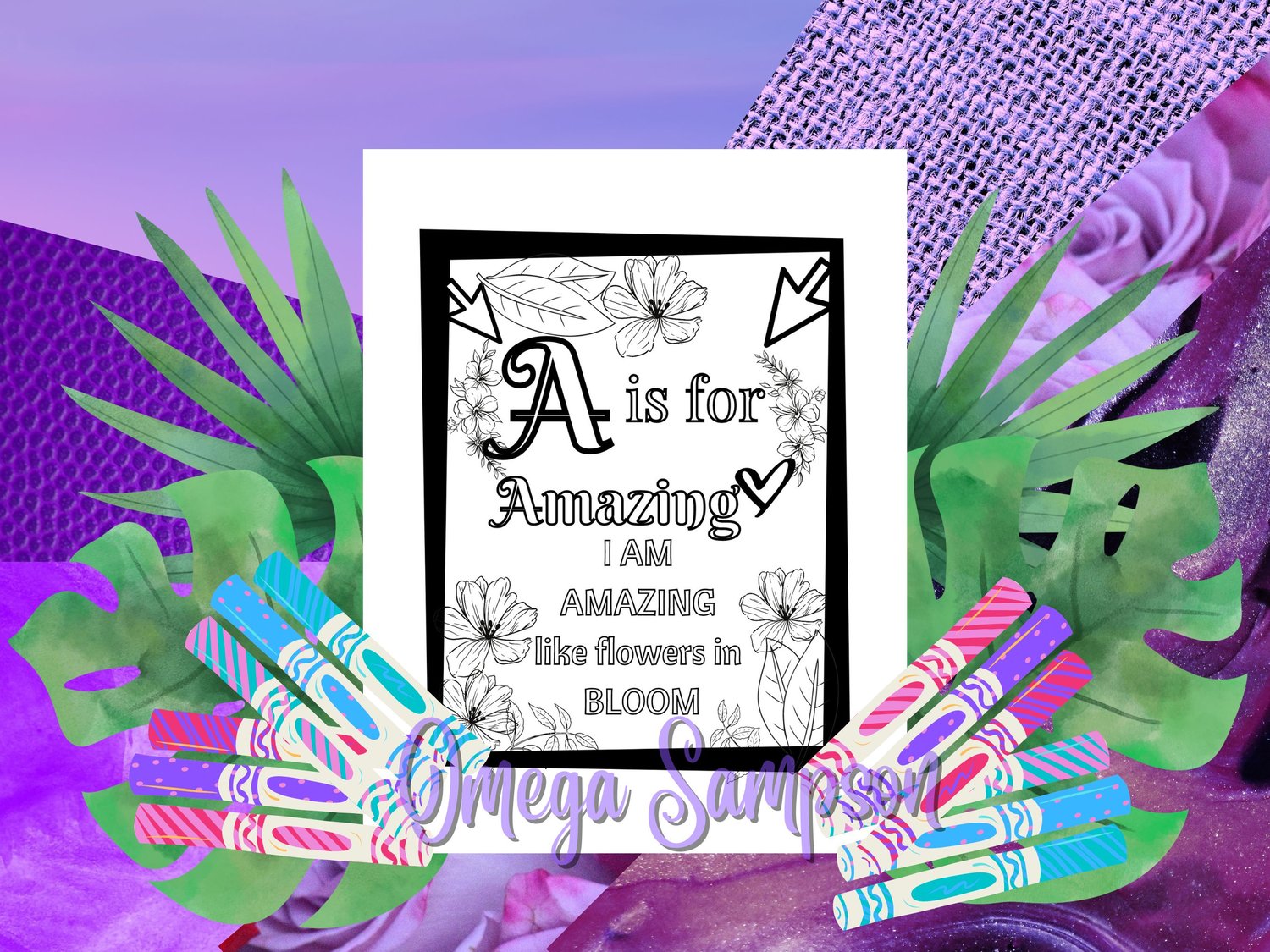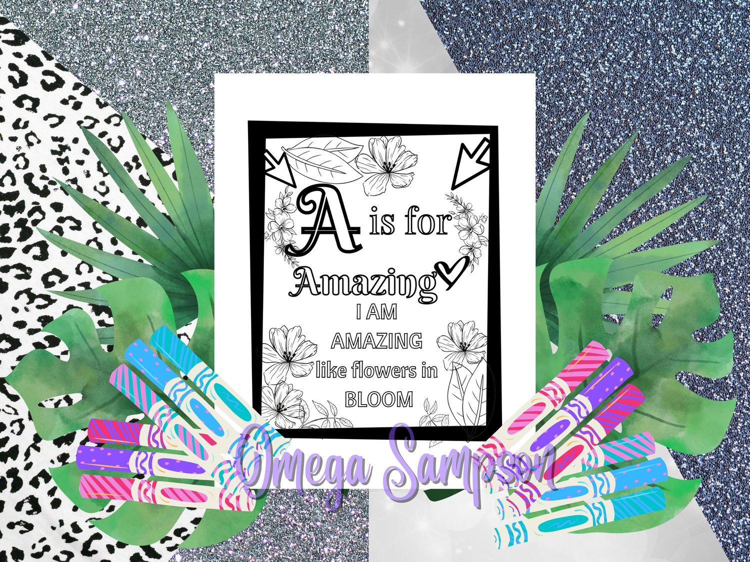 This affirmational alphabet coloring page is a cute & fun activity for all. It can be used as a relaxing activity for adults, educational for children, and a fun activity for family or friends. Not only is it fun but uplifting and a beautiful addition to any home or classroom.