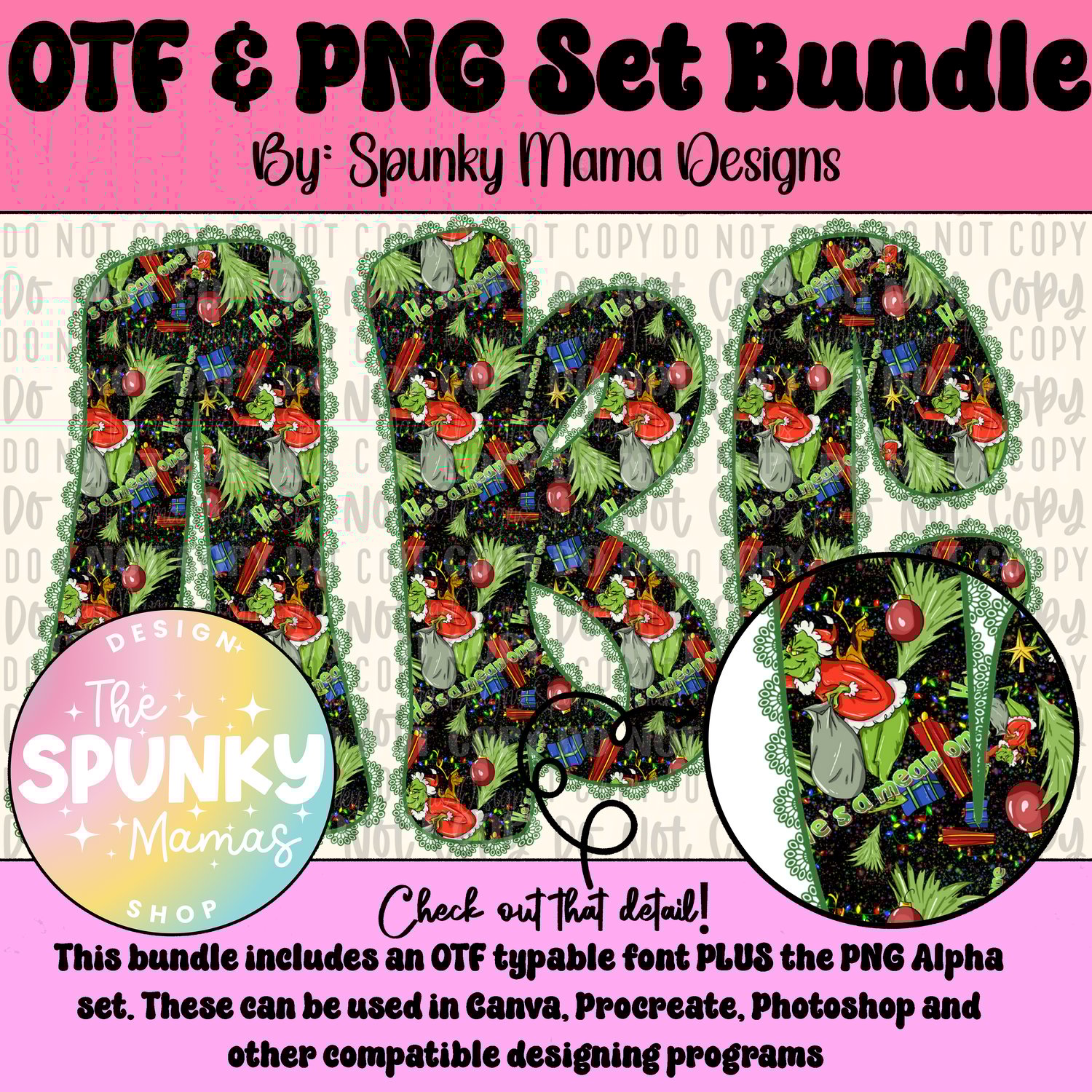 He's A Mean One OTF Font and Digital PNG Alpha Set