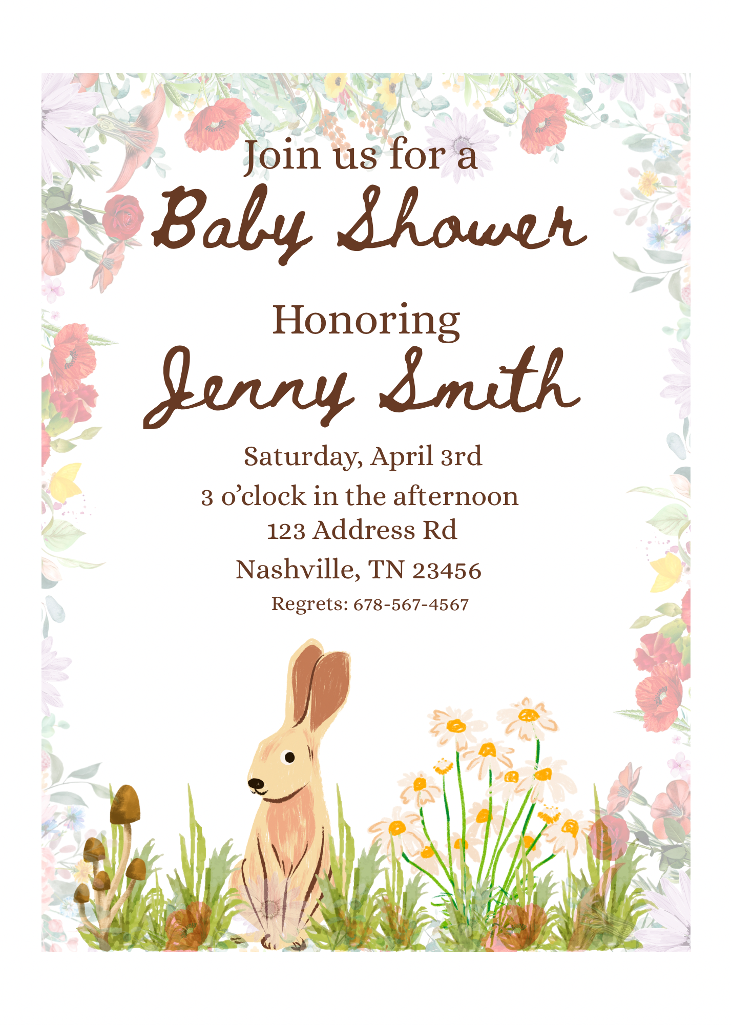 Once you purchase, you’ll receive a link to edit this cottagecore baby shower invitation template into your own!