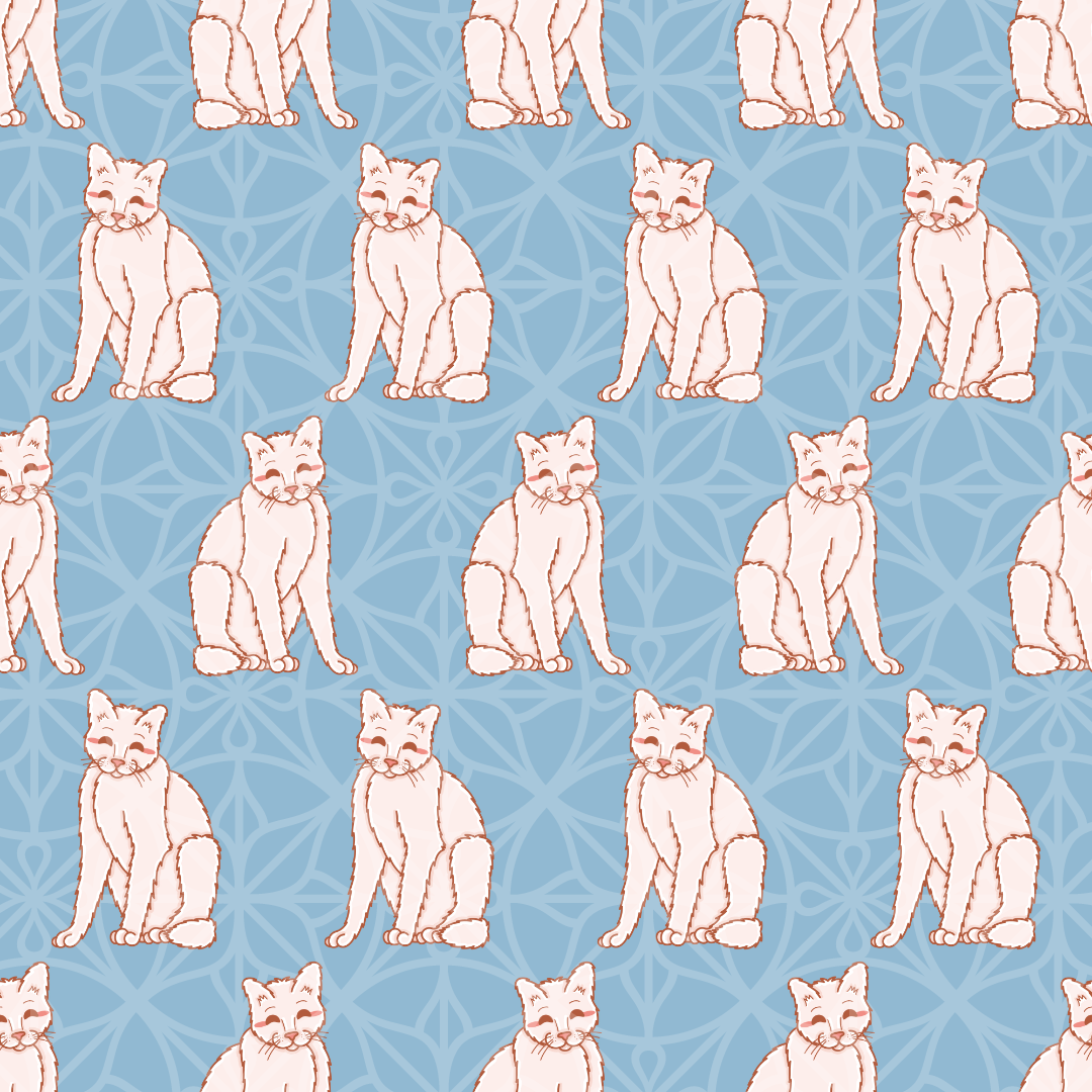 Smiling kitten vector pattern background. Cute cat seamless illustration.