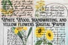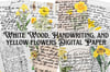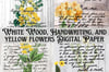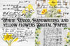 White Wood, Handwriting, and yellow flowers Digital Paper
