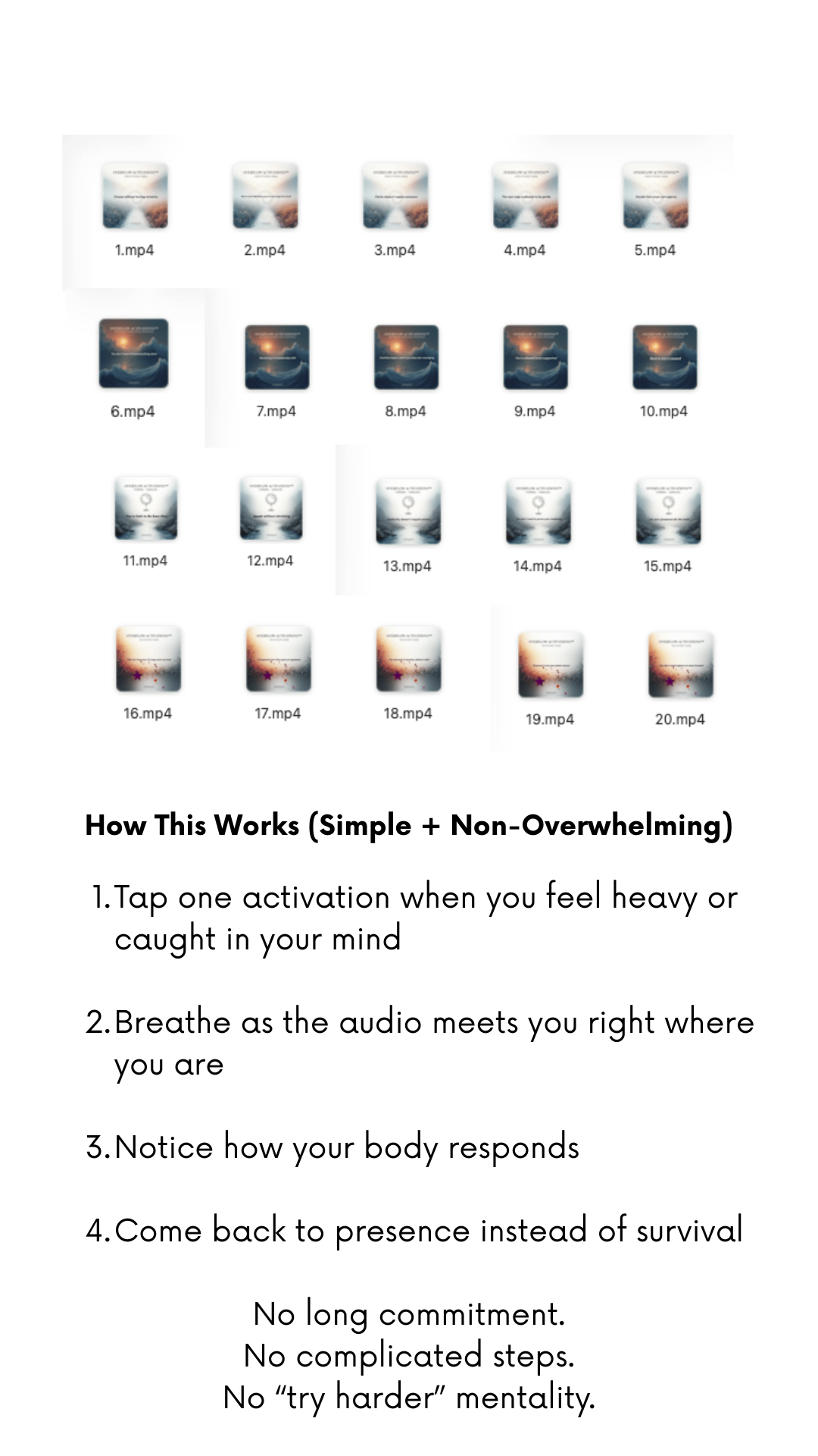 Get 20 Nervous-System-Safe Audio Activations for Lighter Days Even If You’re Tired, Worried, or Running On Autopilot