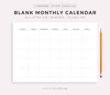 Blank Monthly Calendar, Landscape, Printable & Fillable, A4/Letter Size