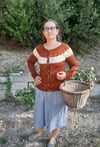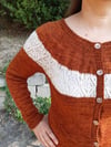 Nougatine est un gilet très féminin, tout en délicatesse, agrémenté d’une jolie guirlande en dentelle.