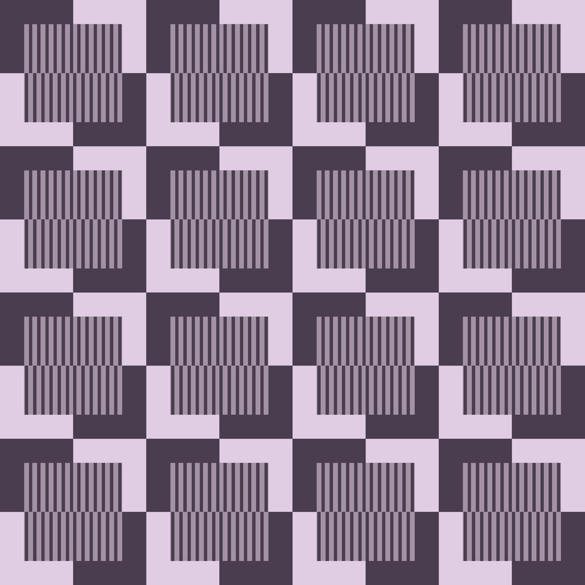A sophisticated architectural pattern featuring intersecting squares and linear stripes in a modern mauve and deep plum palette.